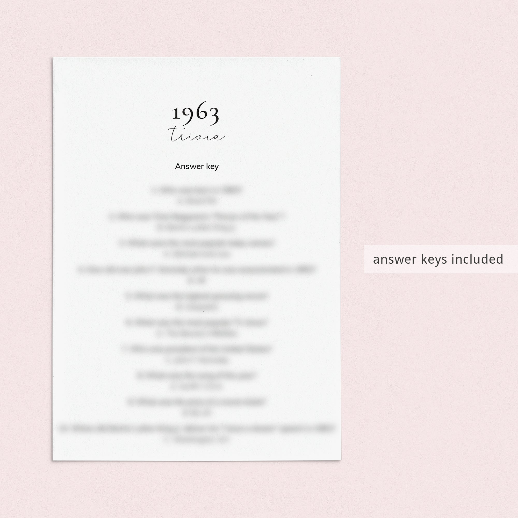 • 1963 Trivia (answer key included)