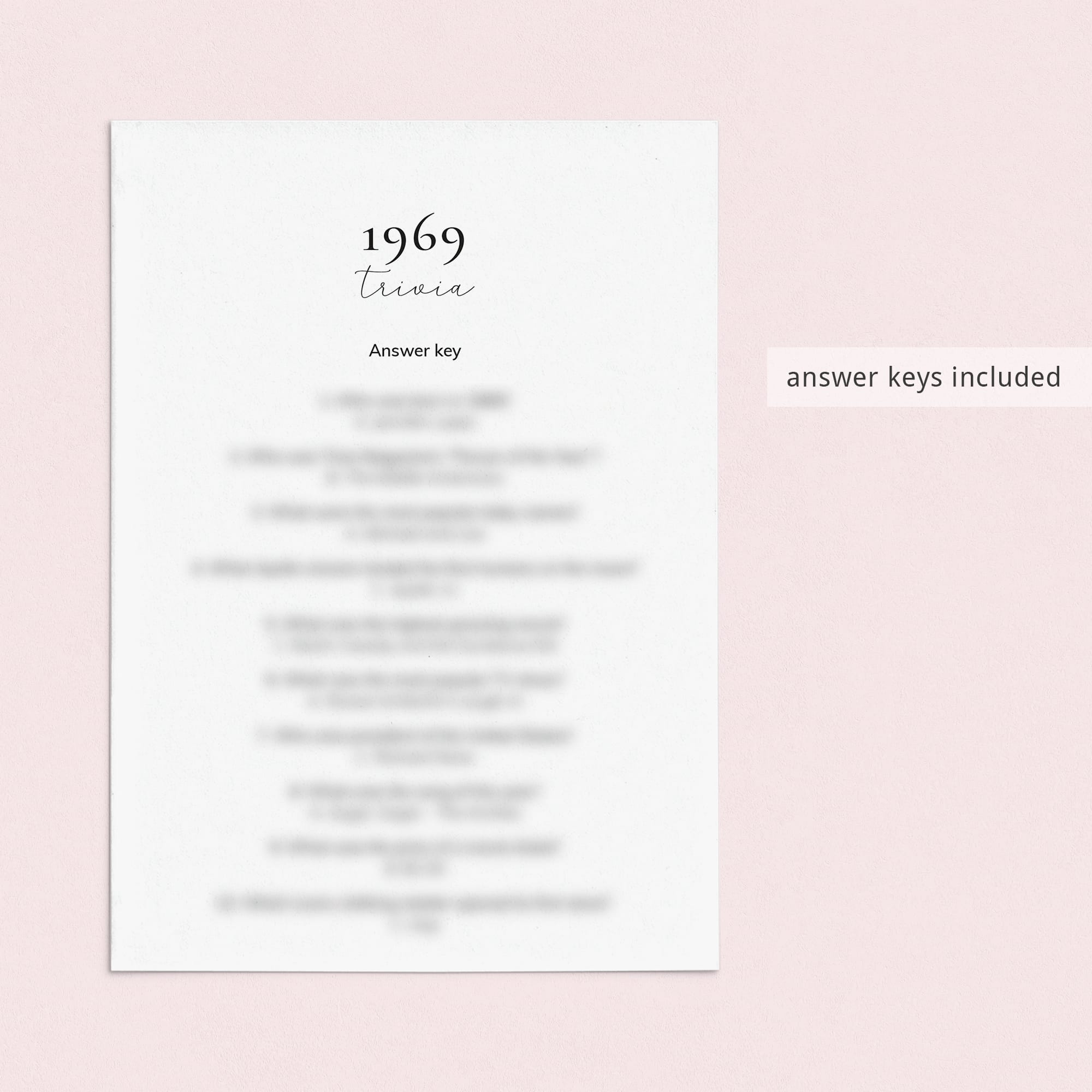 This Born in 1969 Birthday Games Bundle for Her includes the following 8 games and activities: