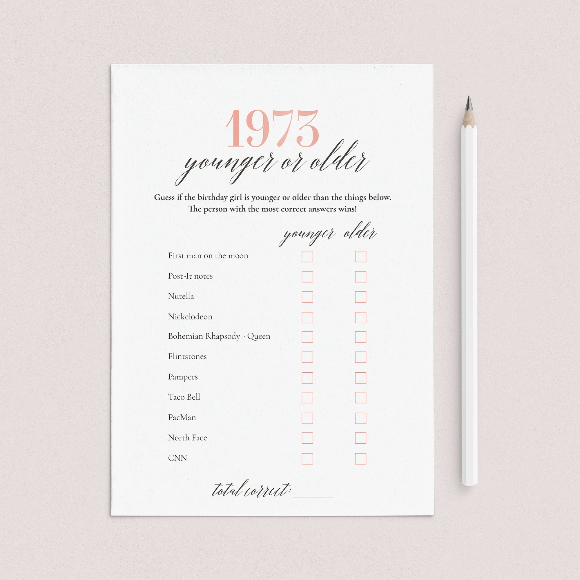 The printable 1973 Birthday Games Bundle is an instant download. After purchase you will receive a download link immediately on screen. Also within minutes of your order and payment, an e-mail will be sent to you with a link for your download.