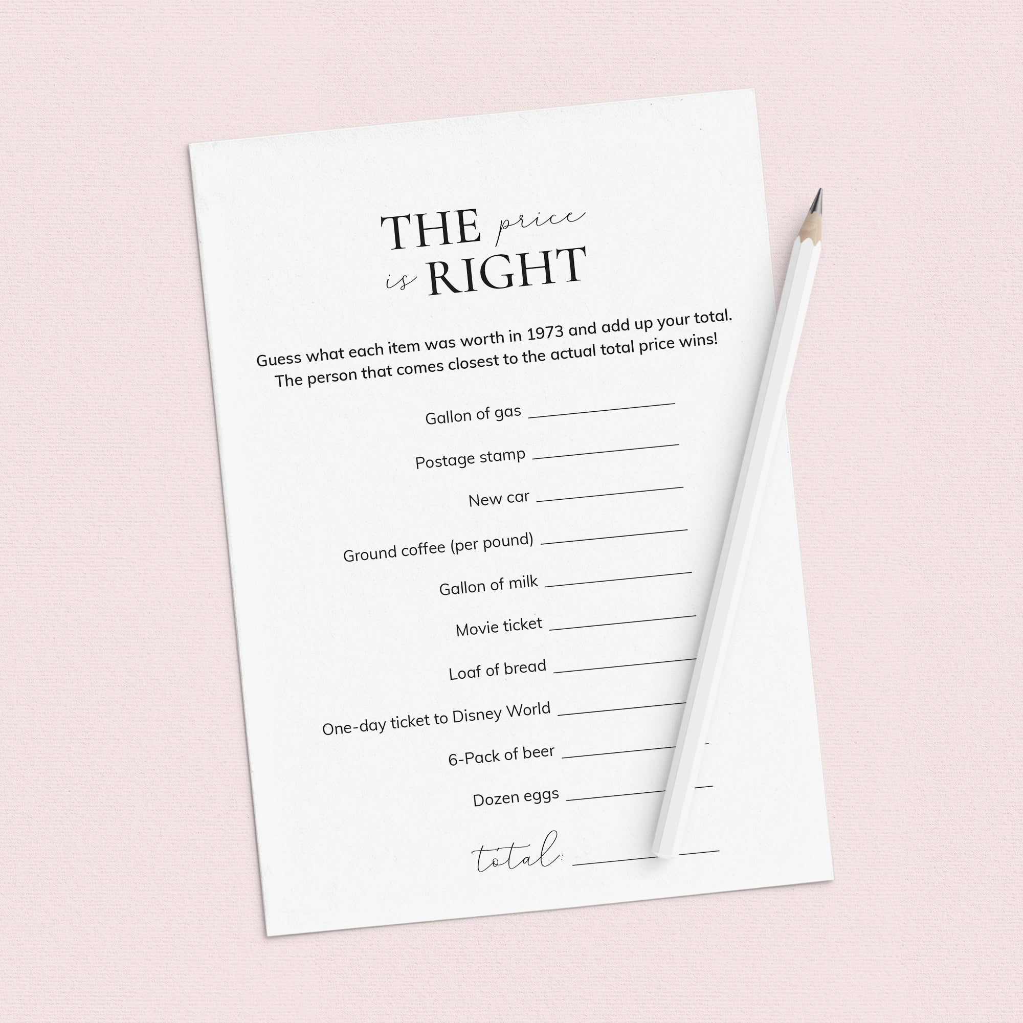Print the games right from your computer in a matter of minutes or have the cards printed at your favorite print shop. The games have been designed in black and white. You can print on kraft paper to create a rustic look or print on colored card stock to match your party color palette. We recommend printing on a nice heavy card stock for highest quality feel.