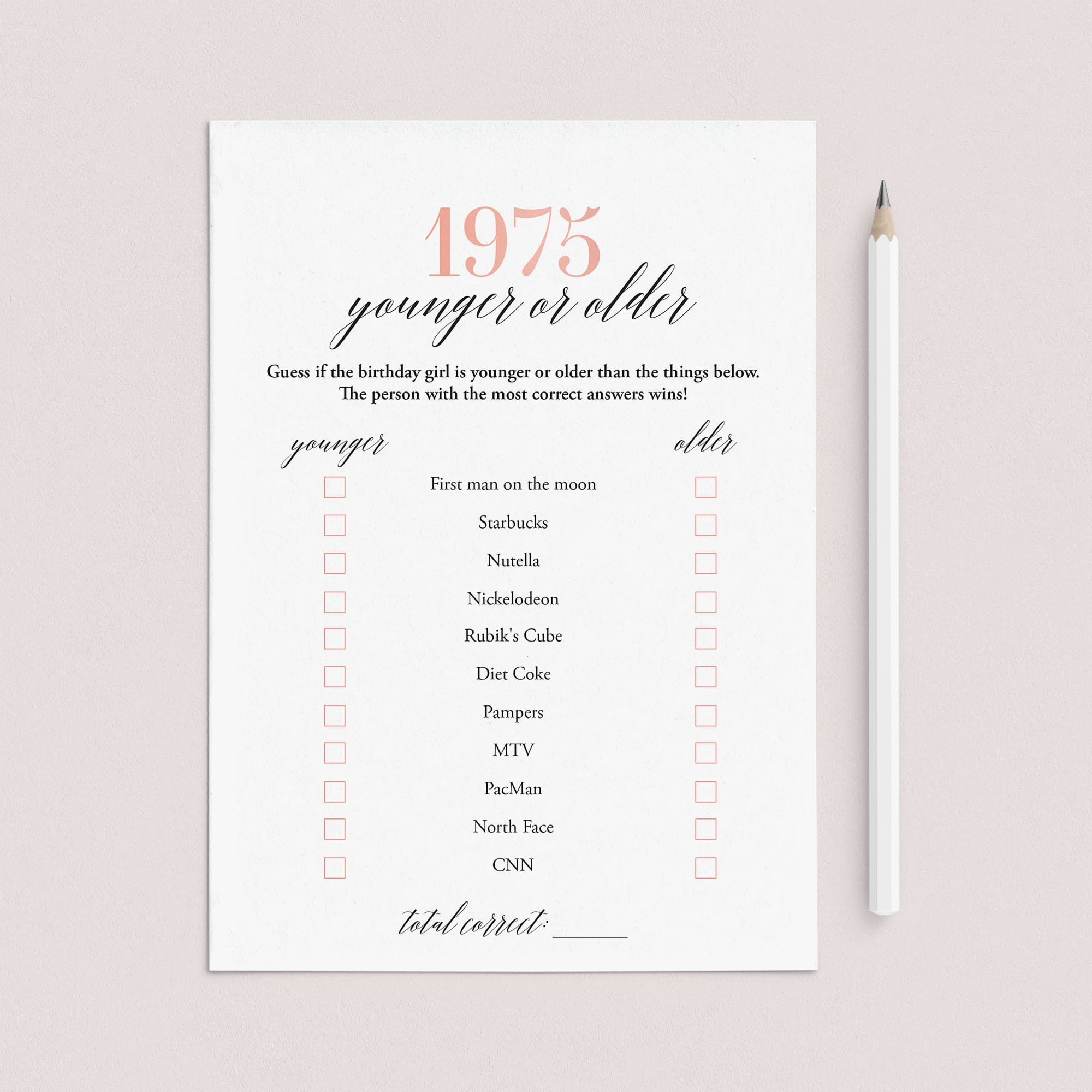 The printable 1975 Birthday Games Bundle is an instant download. After purchase you will receive a download link immediately on screen. Also within minutes of your order and payment, an e-mail will be sent to you with a link for your download.