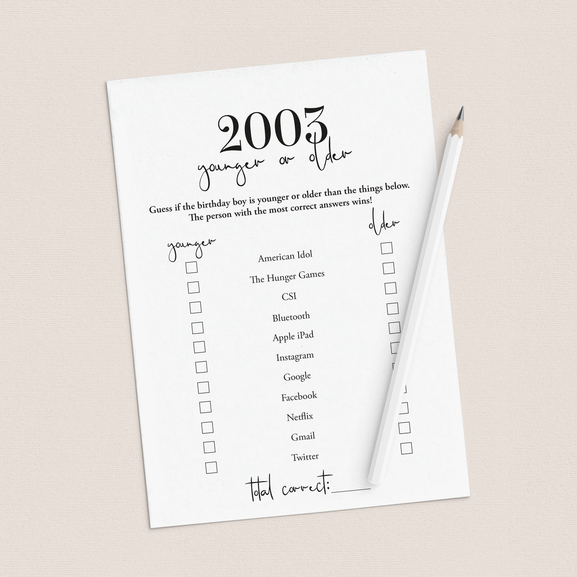 The printable 2003 Birthday Games Bundle is an instant download. After purchase you will receive a download link immediately on screen. Also within minutes of your order and payment, an e-mail will be sent to you with a link for your download.