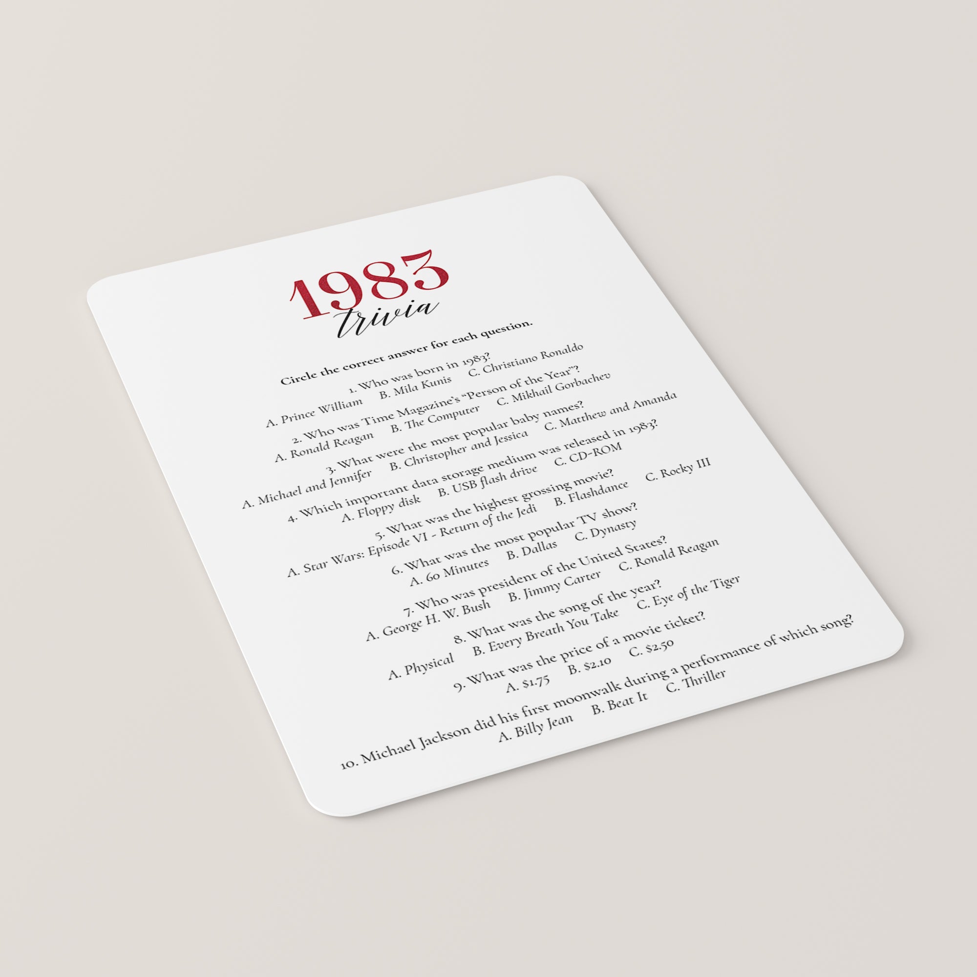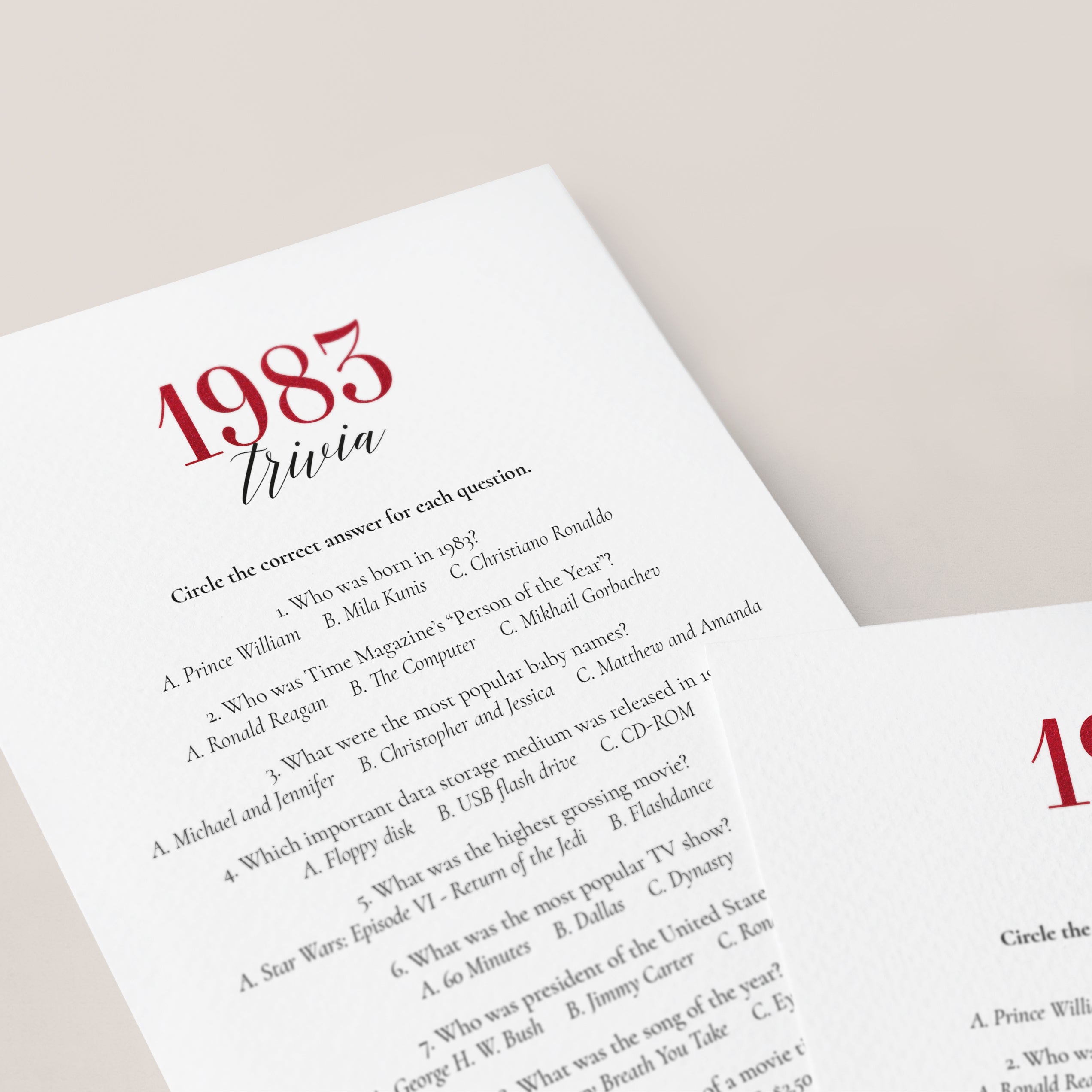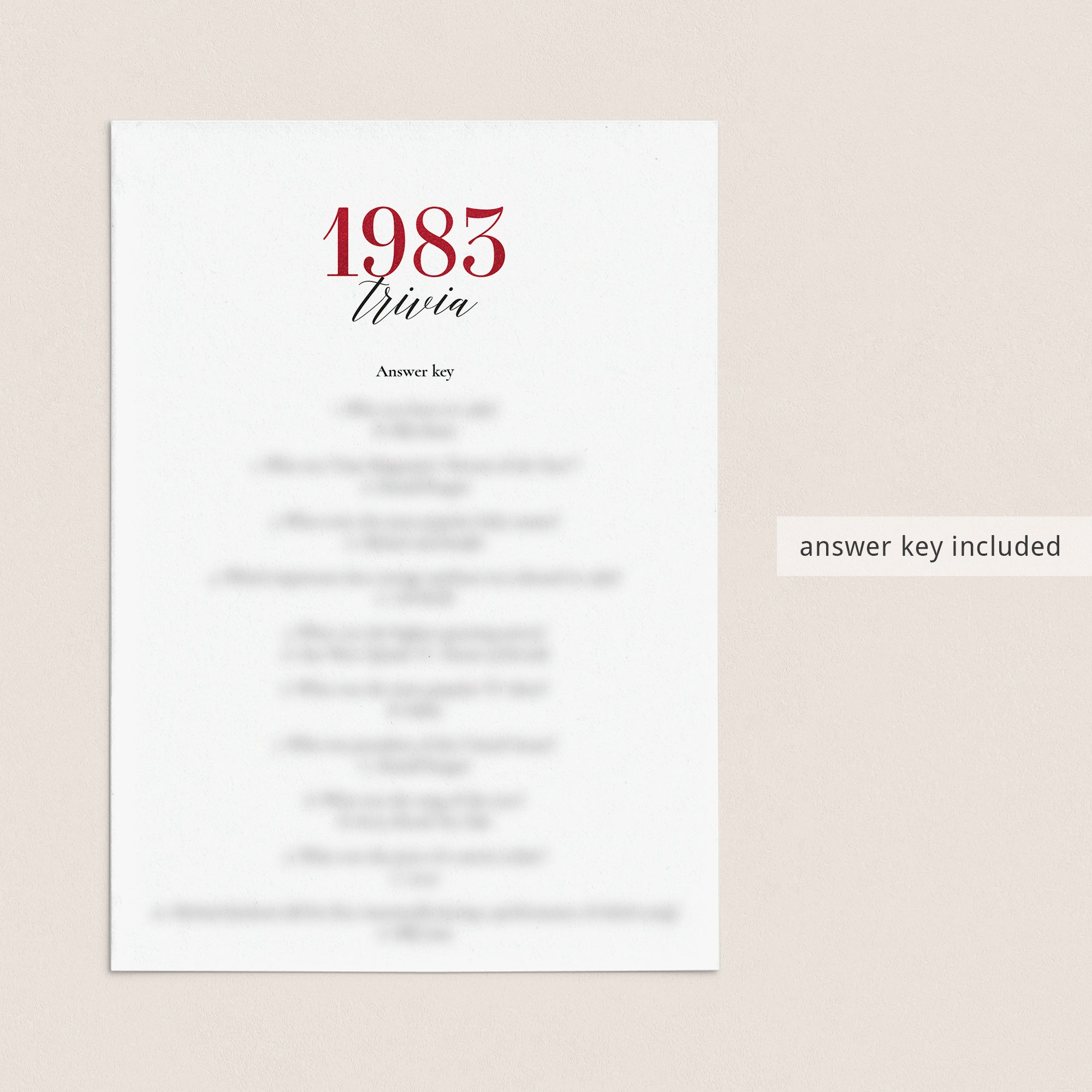 Just in case you are having trouble figuring out the answers, an answer key with the 1983 trivia answers is included.