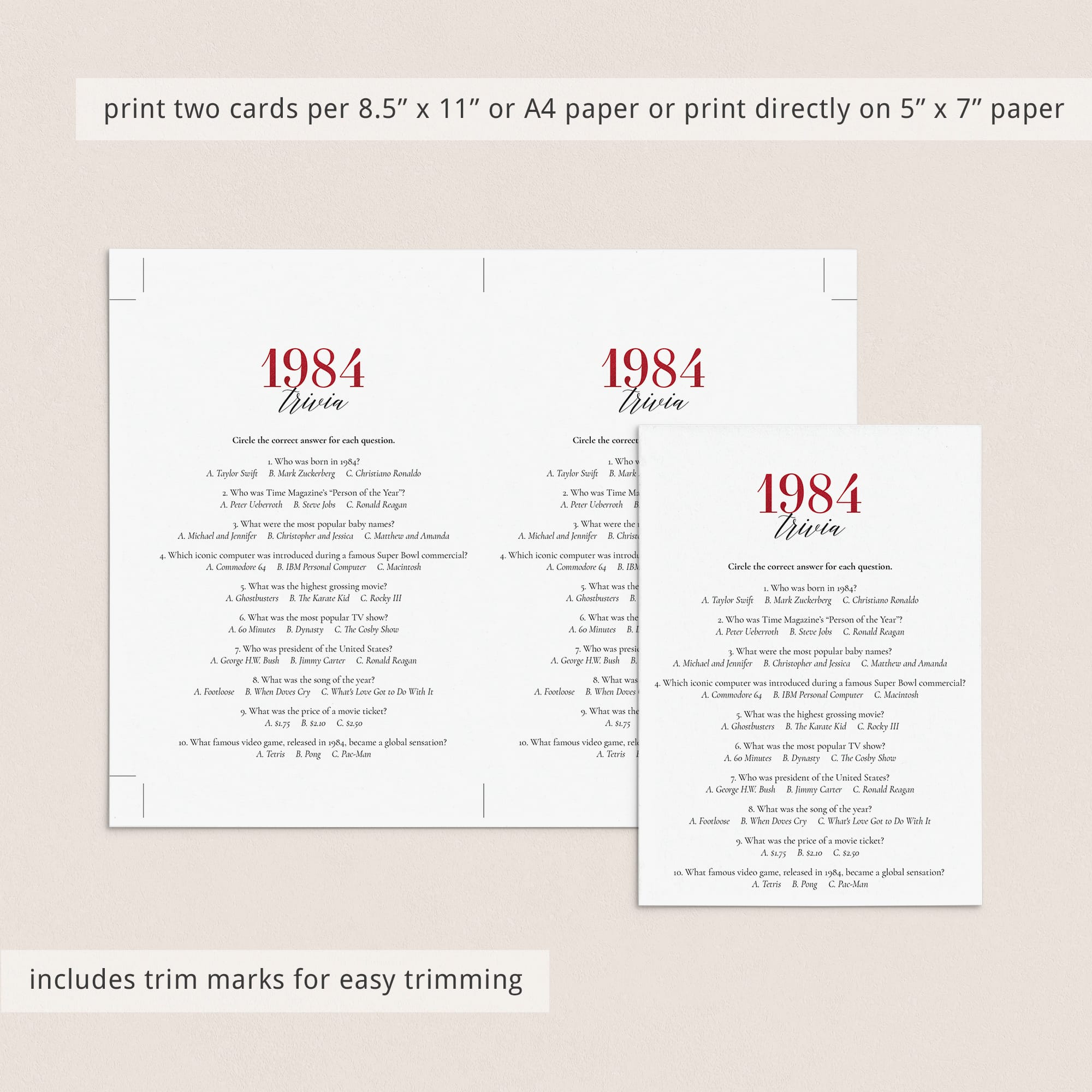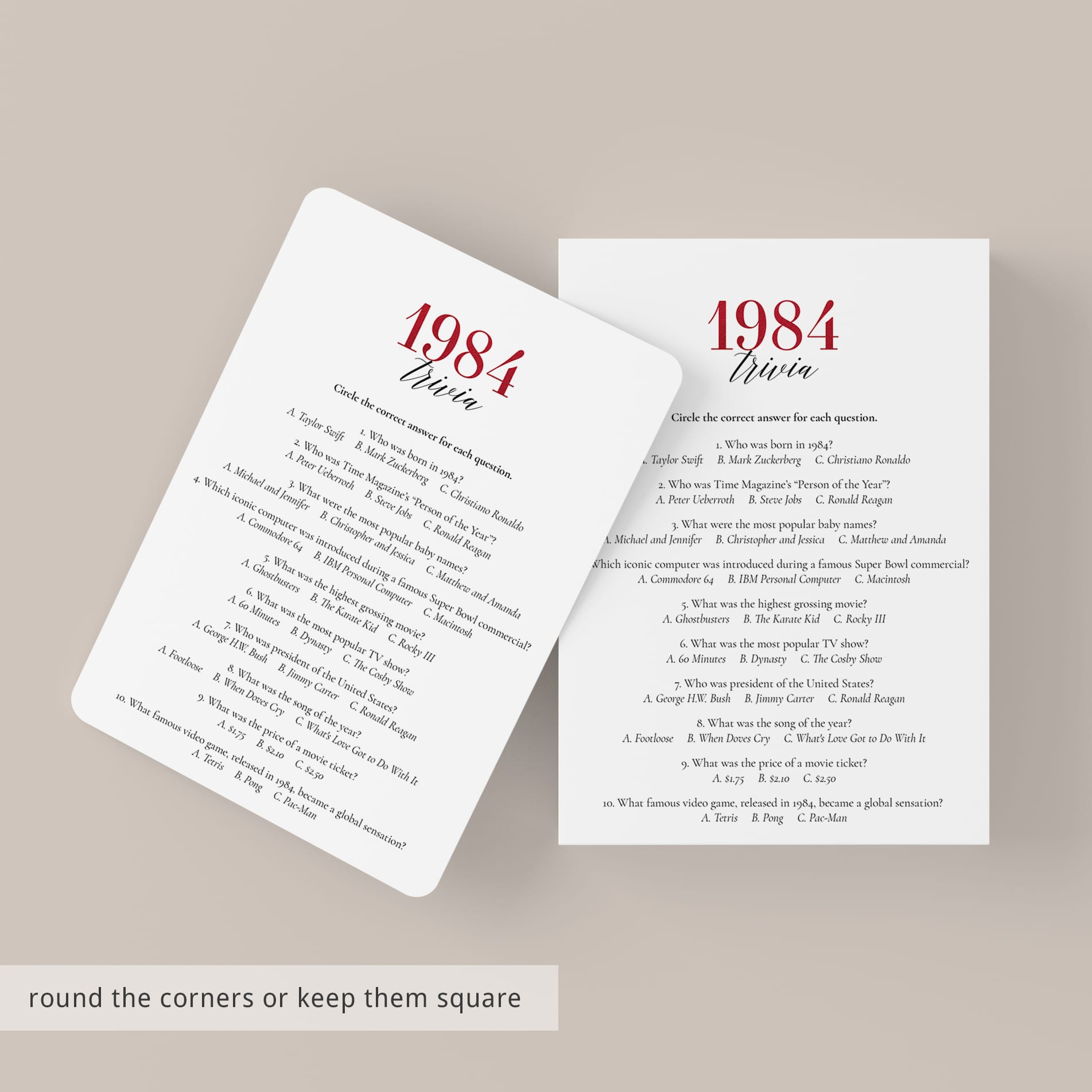 This ruby 1984 trivia is an instant download. After purchase you will receive a download link immediately on screen. Also within minutes of your order and payment, an e-mail will be sent to you with a link for your download.