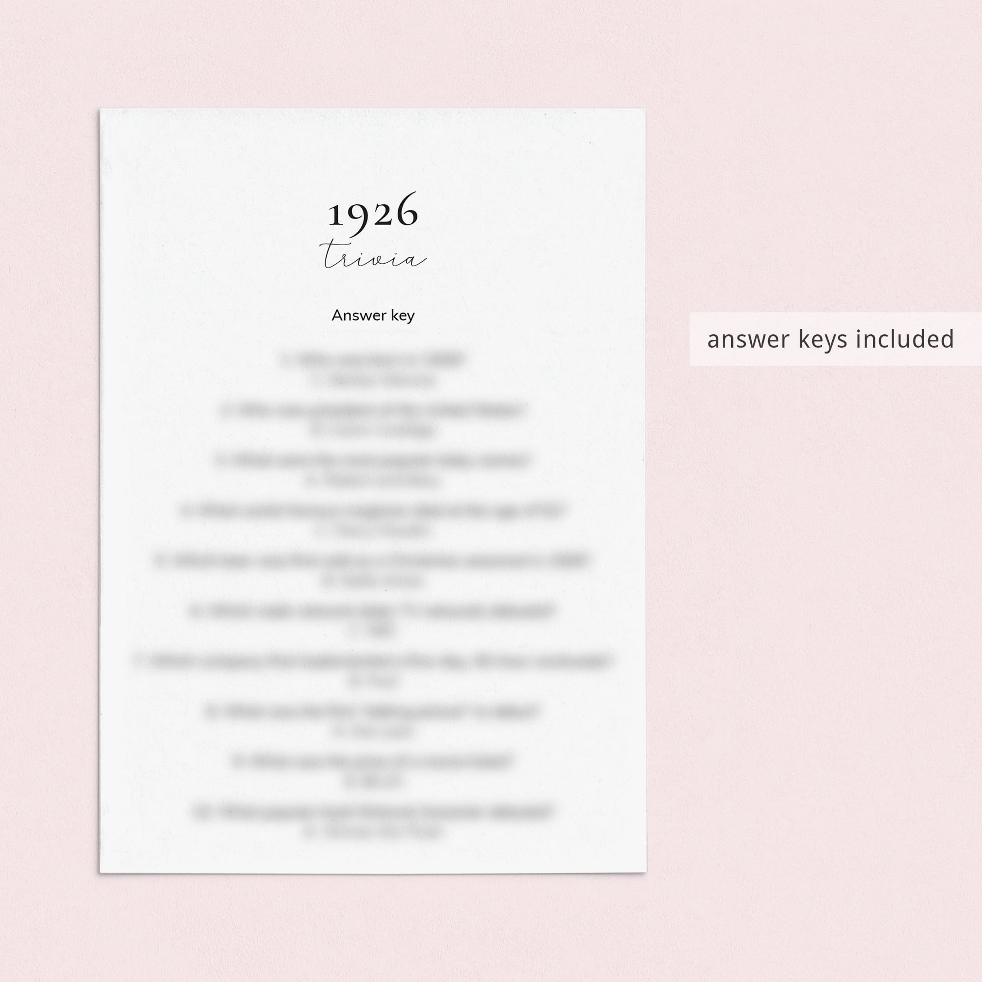 • 1926 Trivia (answer key included)