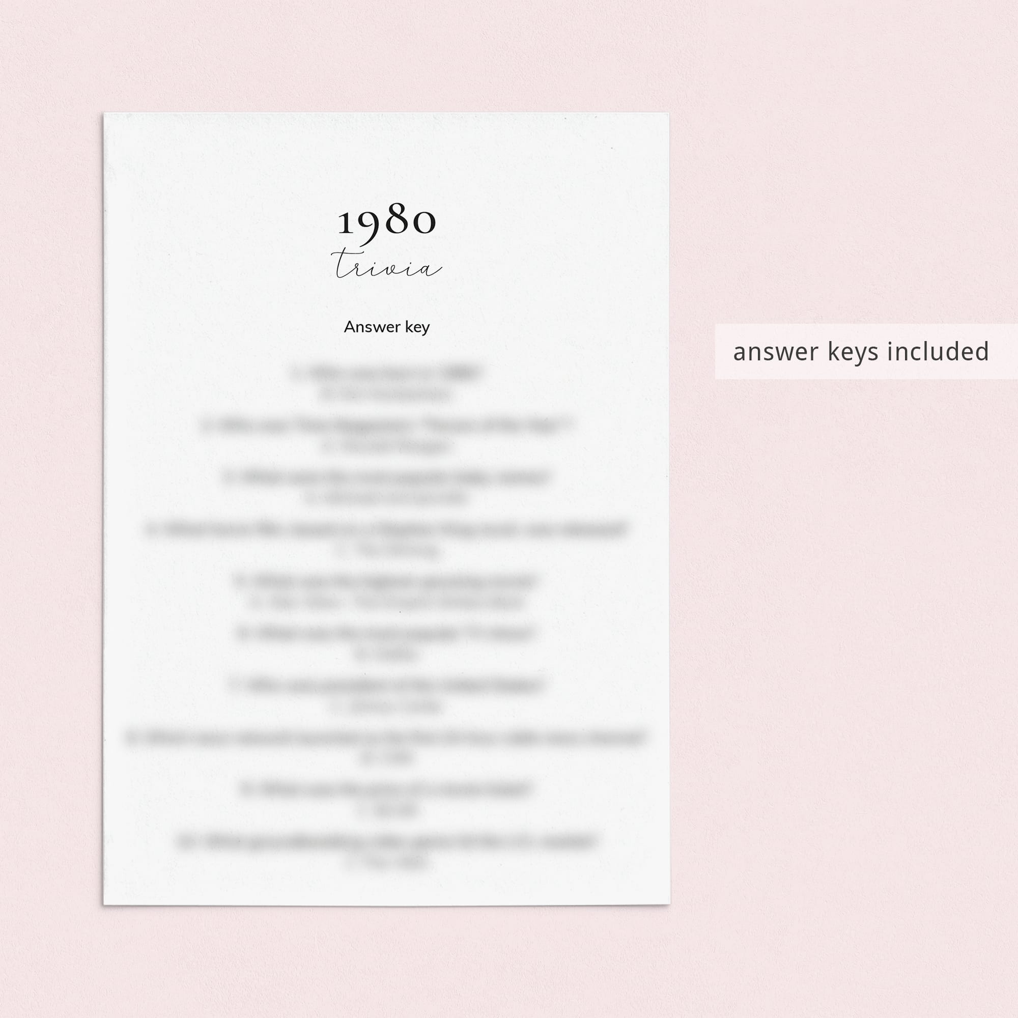 • 1980 Trivia (answer key included)