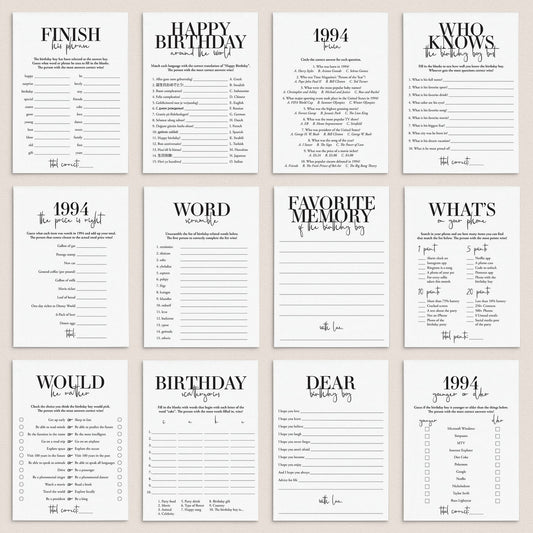 Born in 1994 31st Birthday Party Games Bundle For Men