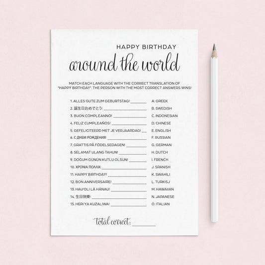 Minimalist Birthday Party Game Printable Happy Birthday in Different Languages