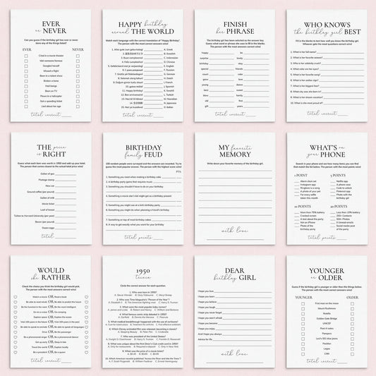 Celebrate her special milestone with this elegant and minimalist 70th Birthday Party Games Bundle designed for a woman born in 1955! Whether you're hosting a family gathering or a big birthday bash, these fun and engaging party games are the perfect way to honor her...- $15.99