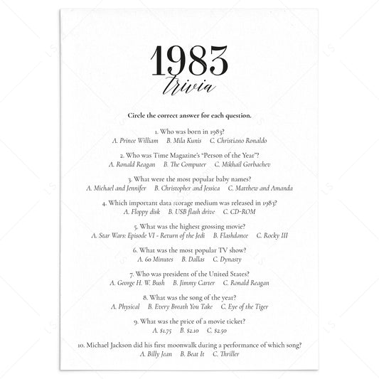 Are you looking for a fun game for a 42nd birthday party or 42nd anniversary? Look no further! This 1983 fun facts quiz with 10 multiple choice questions is such a fun trivia game to play with your friends and family. Test your guests how well they know...- $4.49