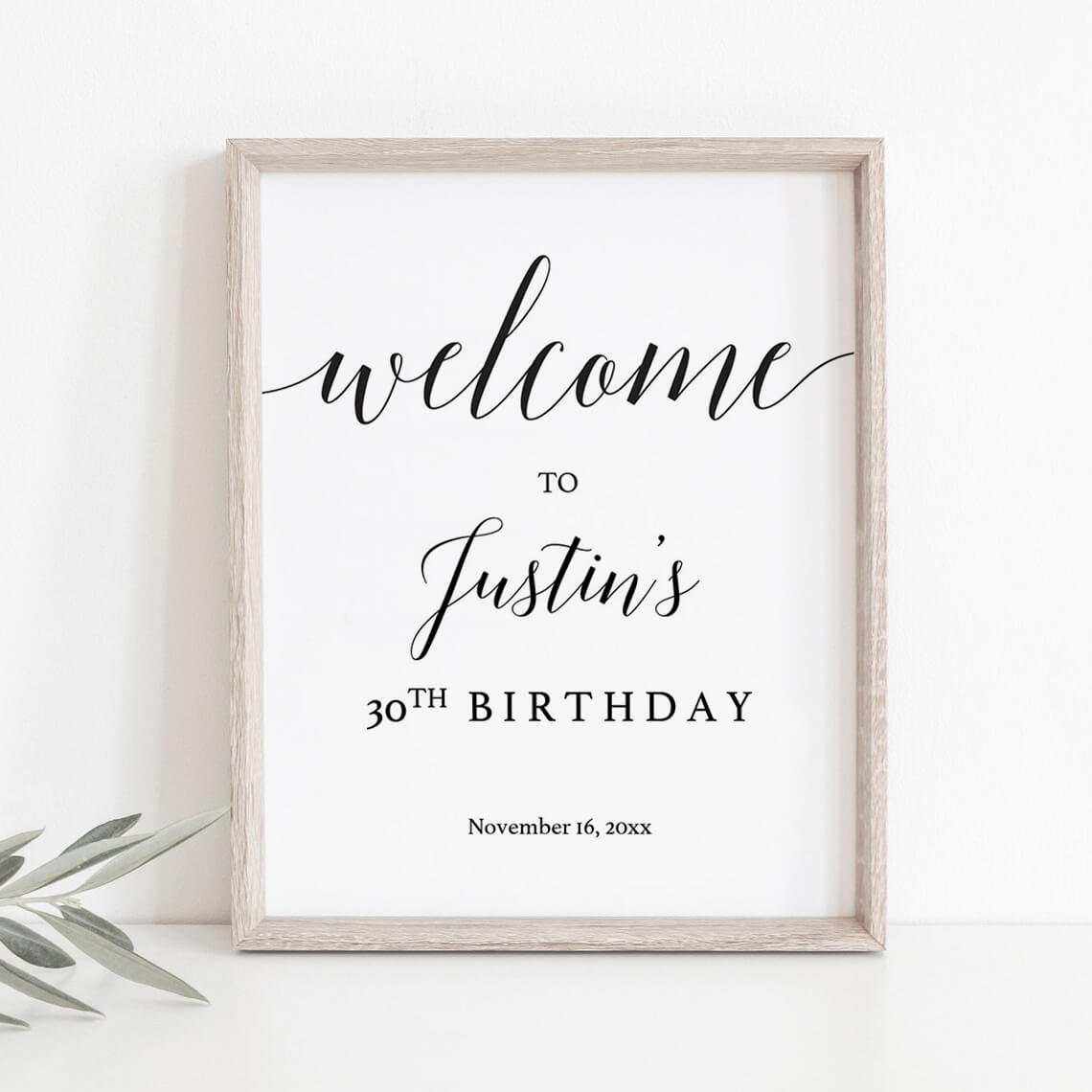 Set the tone for your birthday and decorate your party with this calligraphy birthday welcome sign.