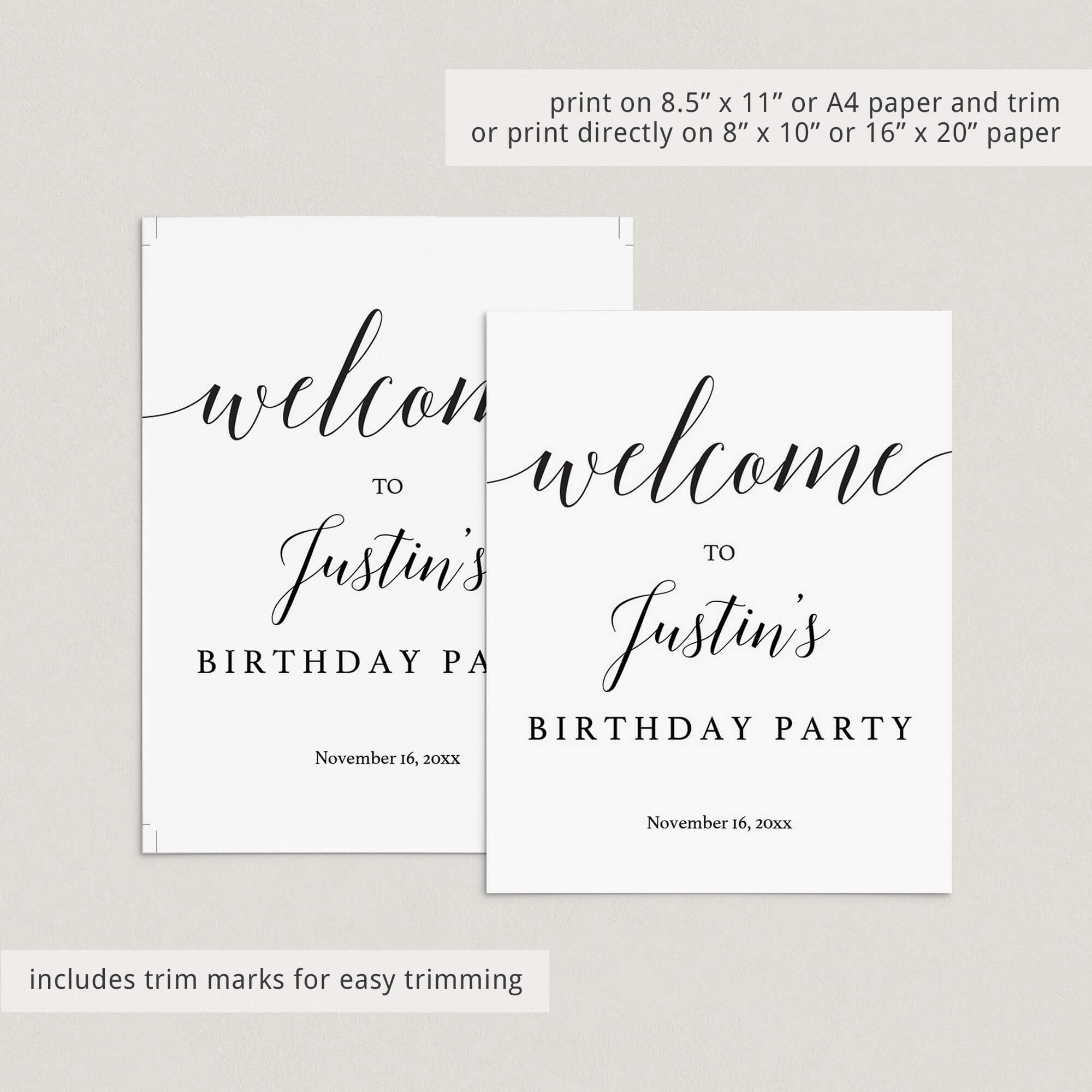 Print the calligraphy birthday welcome sign on card stock or card board to give it a sturdy look and display it in a frame or on a beautiful easel. This elegant birthday welcome sign will instantly uplevel any birthday party.