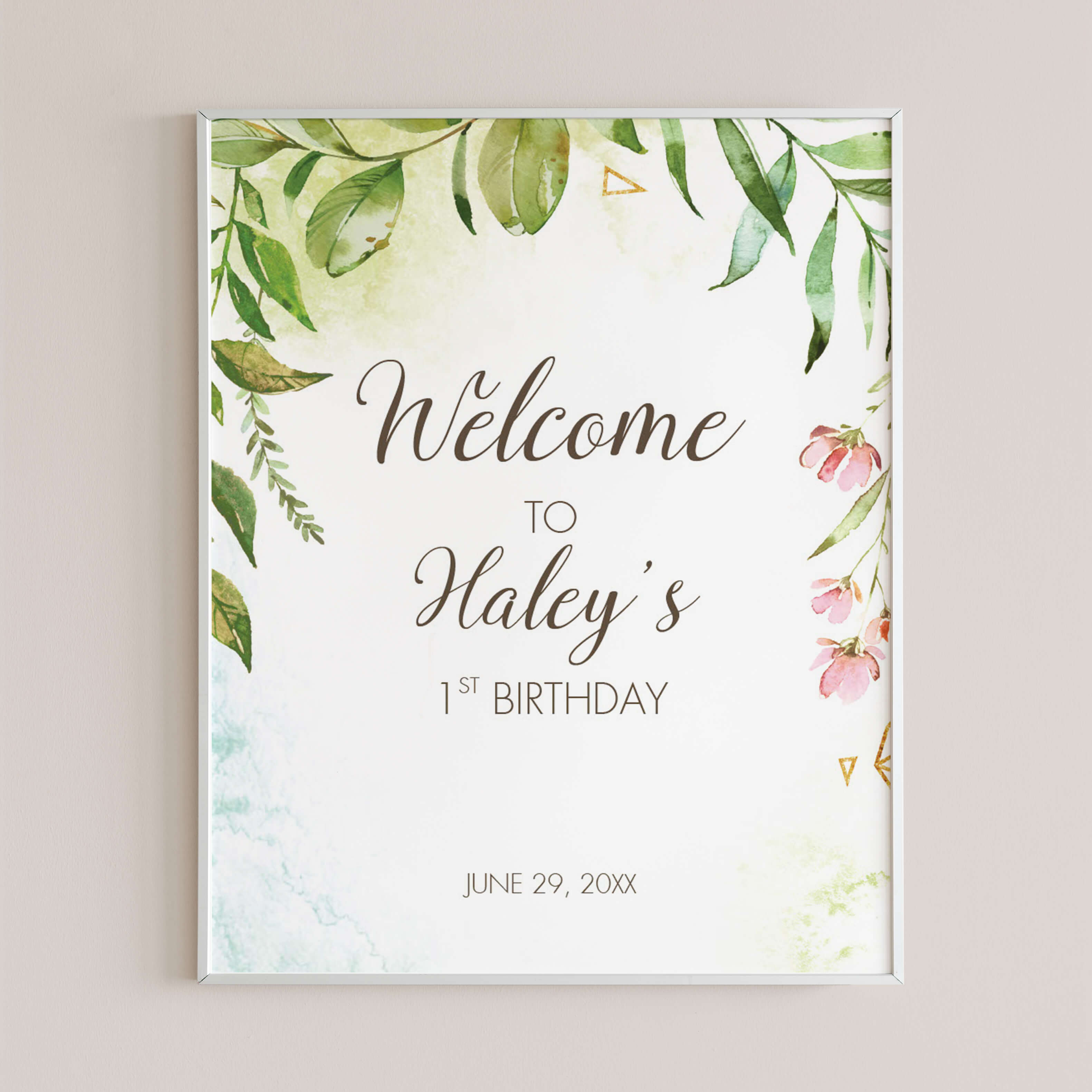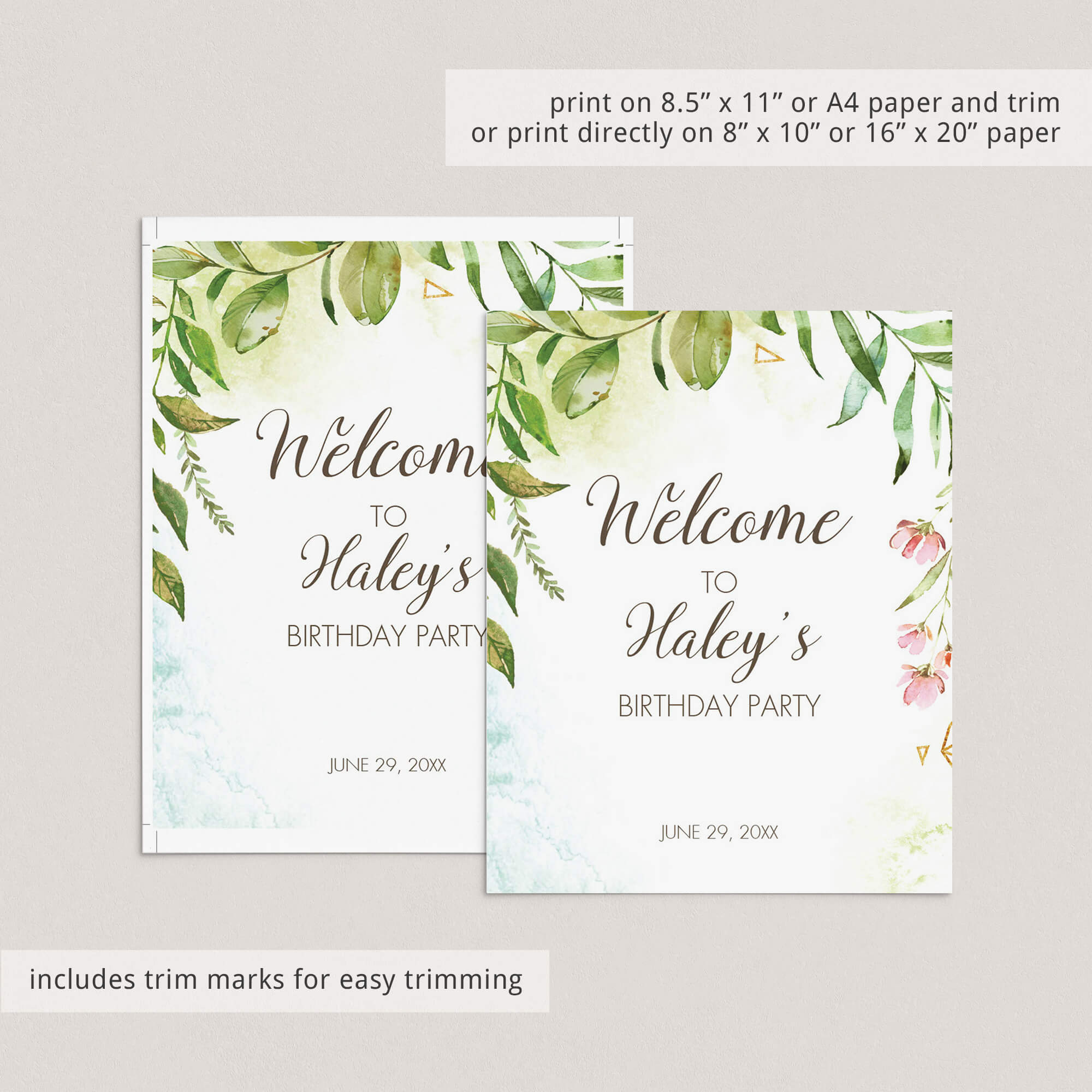Print the birthday welcome sign on card stock or card board to give it a sturdy look and display it in a frame or on a beautiful easel. This garden birthday welcome sign will instantly uplevel any party.