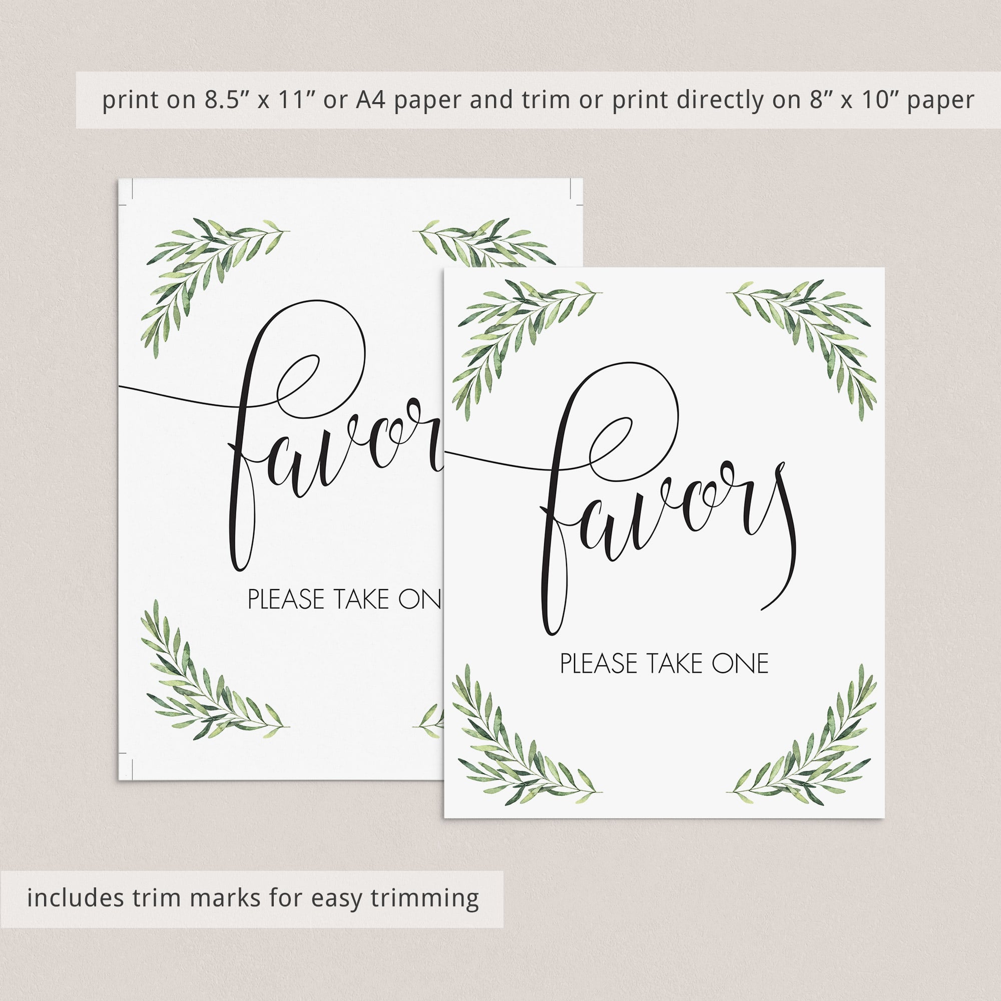 Decorating your event is almost as fun as the party itself! With this greenery Favors sign with calligraphy font and green olive branches, you will add an elegant touch to any party. It is perfect for a greenery wedding, gender neutral baby shower or garden bridal shower.
