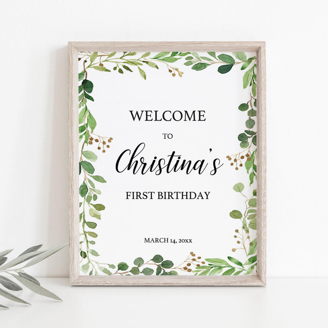 Set the tone for your birthday and decorate your party with this gorgeous greenery leaves party welcome board.