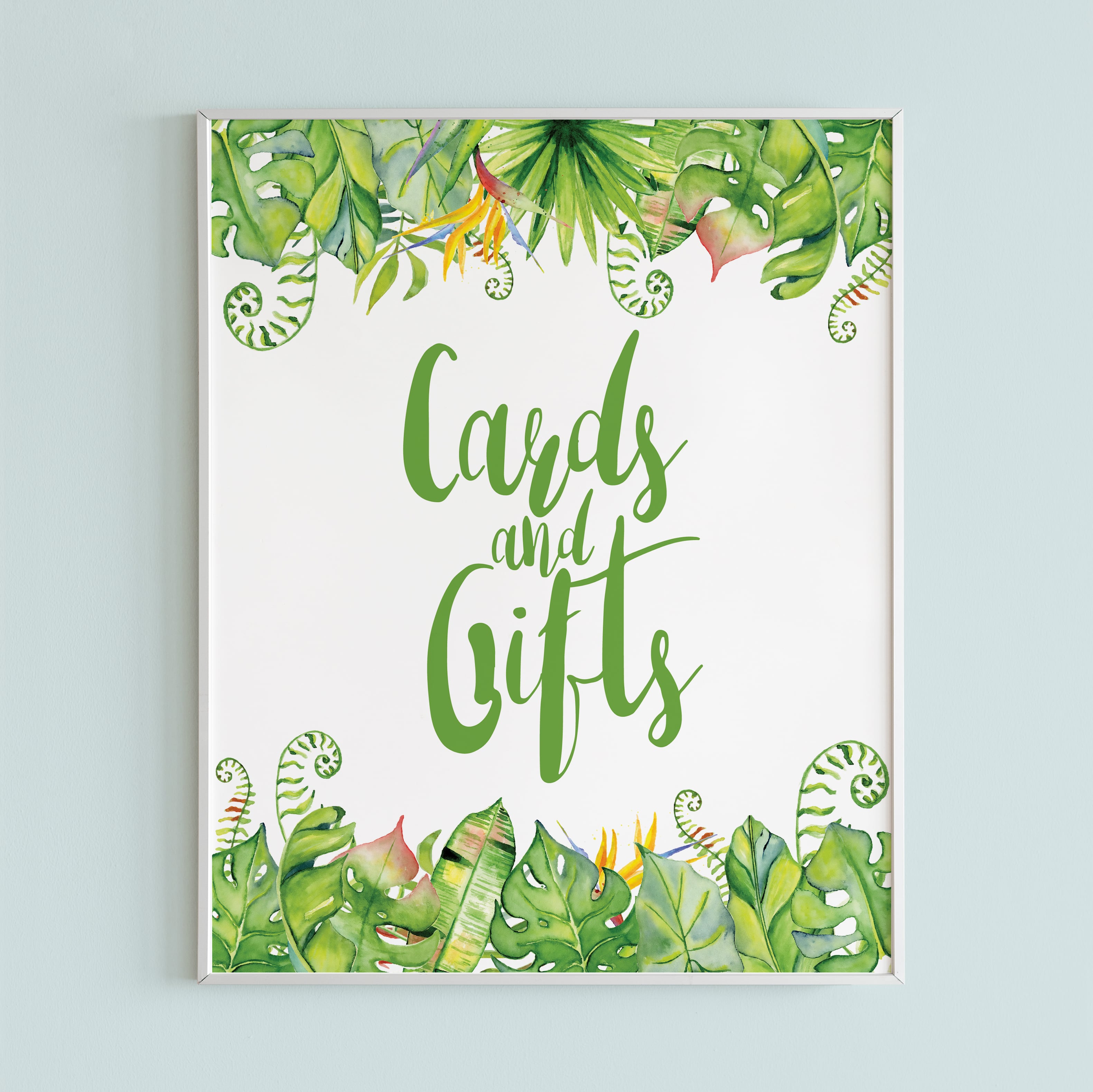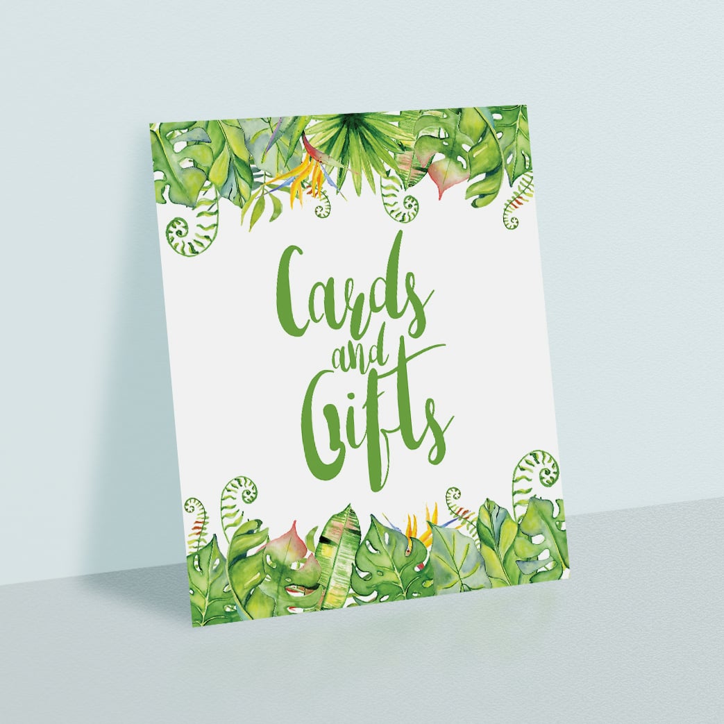 Are you hosting a summer themed party? Let your guests know where to leave their cards and gifts with this Luau Cards and Gifts sign. This tropical sign would look great on any event where there are gifts.