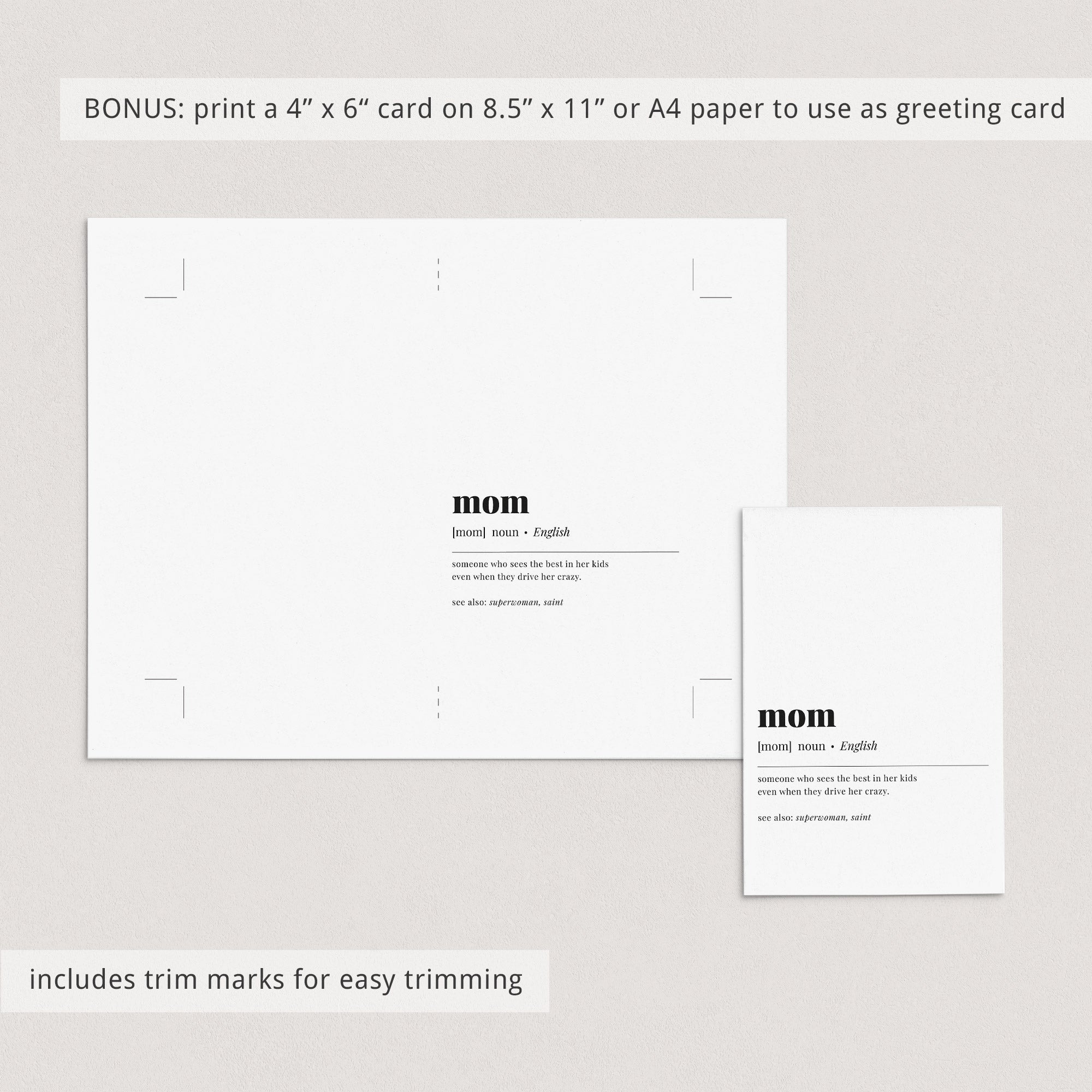 Minimalist and modern definition art is trending at the moment, so this Mom definition print is the perfect gift for your mom! Whether you're looking for a last minute Mother's Day gift, a birthday gift for mom, or just a funny card to remind her how special she is, this Mom definition print will definitely make her laugh.