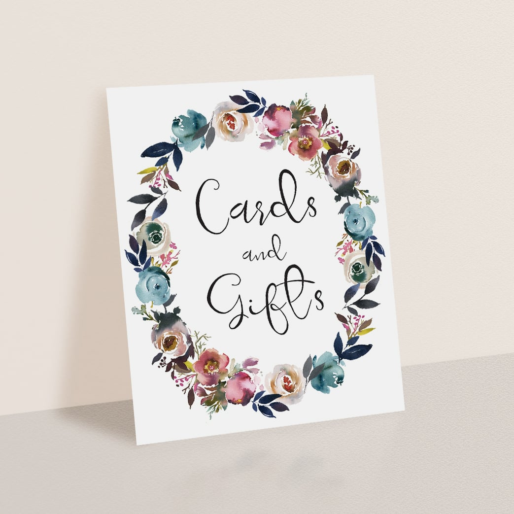 Floral wreath party decor printable cards and gifts sign by LittleSizzle