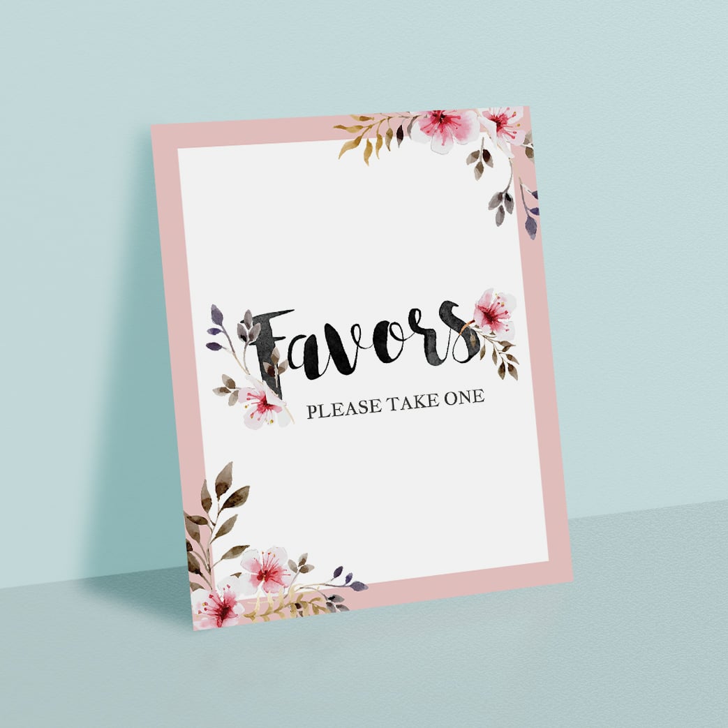 This printable Favors sign is an instant download, so simply download and print the sign right from your computer in a matter of minutes. Frame the table sign in a cute frame and you’ll create a wonderful looking floral themed party.
