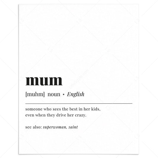 Minimalist and modern definition art is trending at the moment, so this Mum definition print is the perfect gift for your mum! Whether you're looking for a last minute Mother's Day gift, a birthday gift for mum, or just a funny card to remind her how special she is,...- $4.49