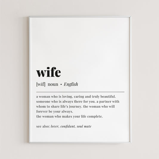 Are you looking for the perfect gift for your wife? Look no further! This modern minimalist Wife definition print is the perfect gift for her. Whether you're looking for a thoughtful wedding gift, an anniversary gift, birthday gift or just a meaningful card to remind her how...- $4.49