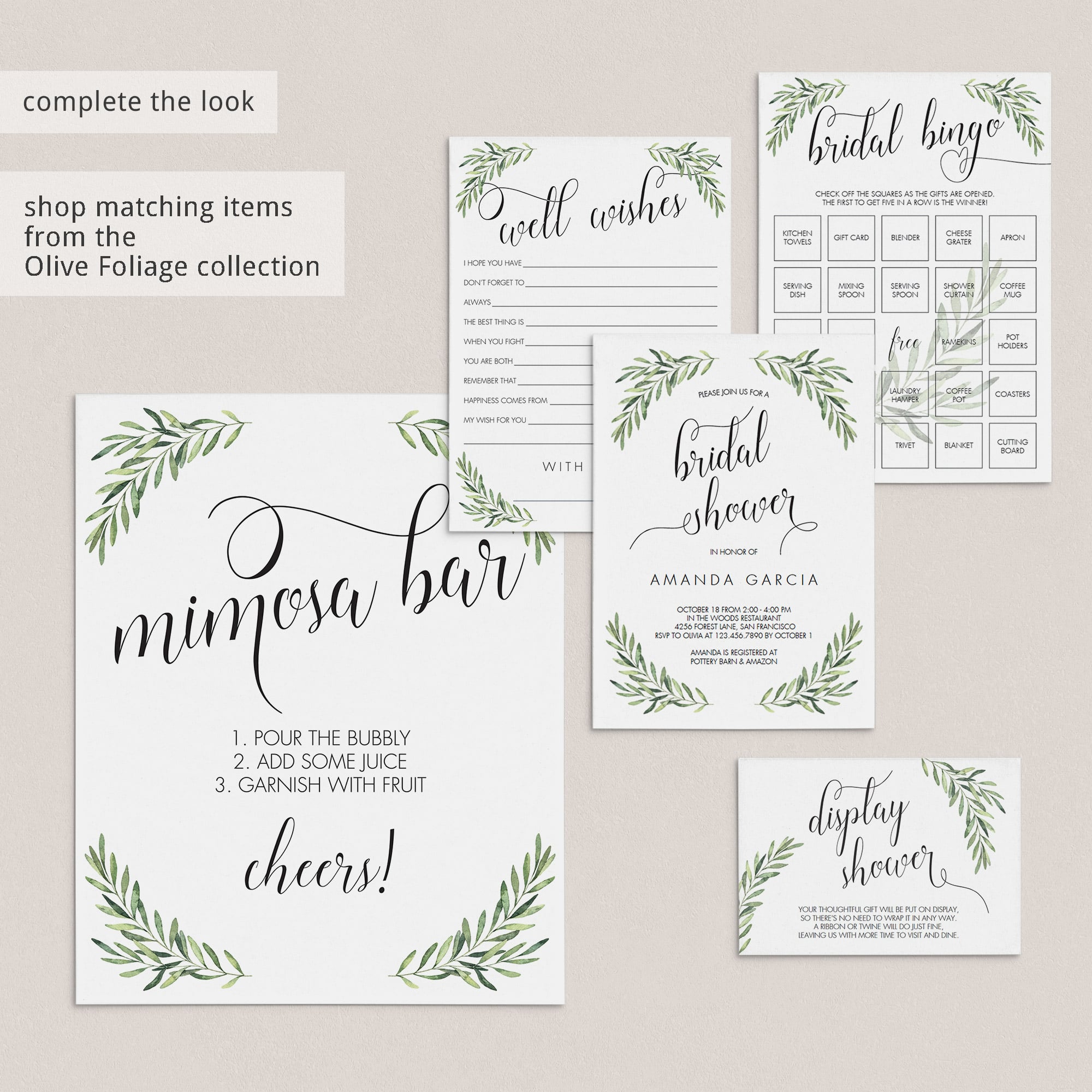 Complete the look with matching items from the Olive Foliage collection.