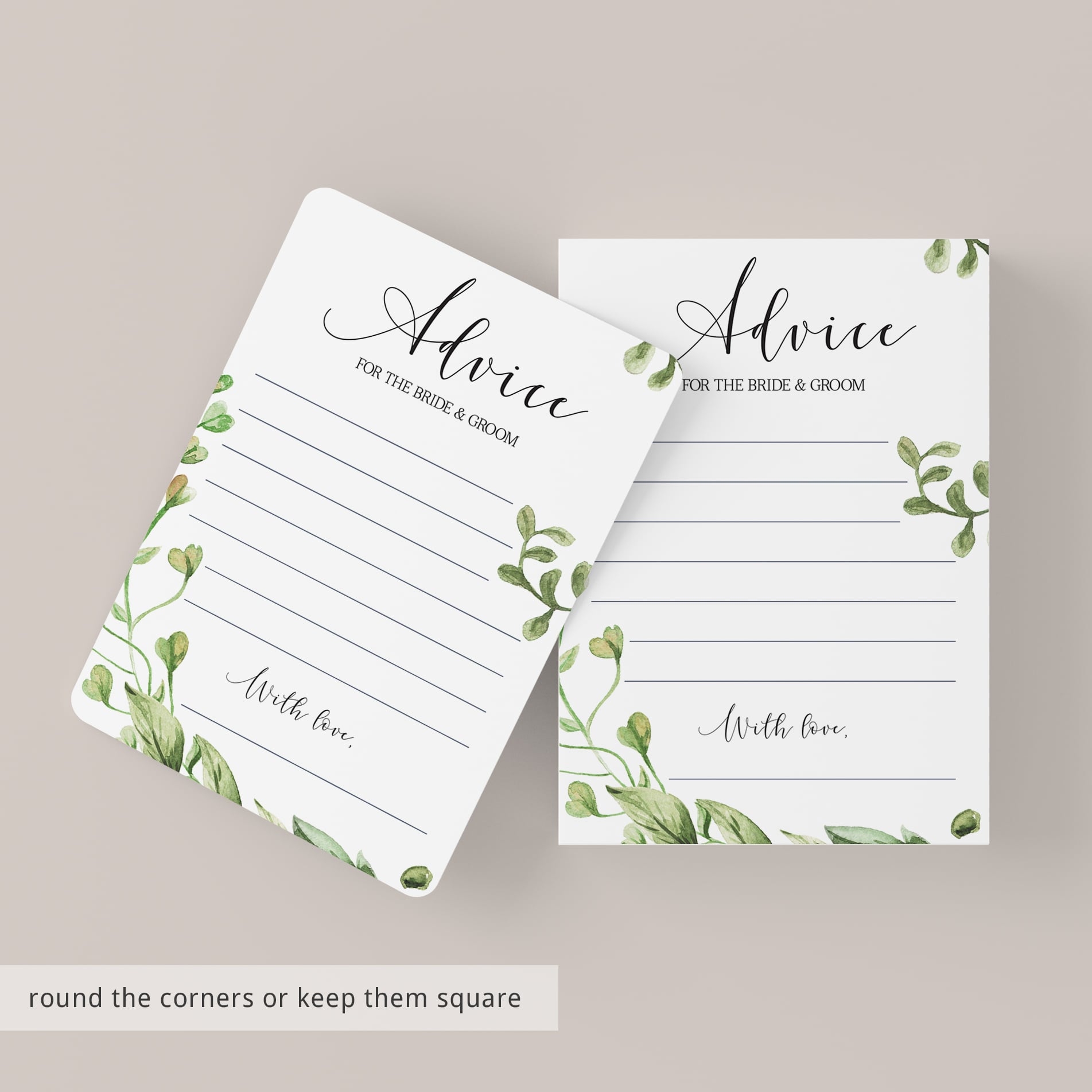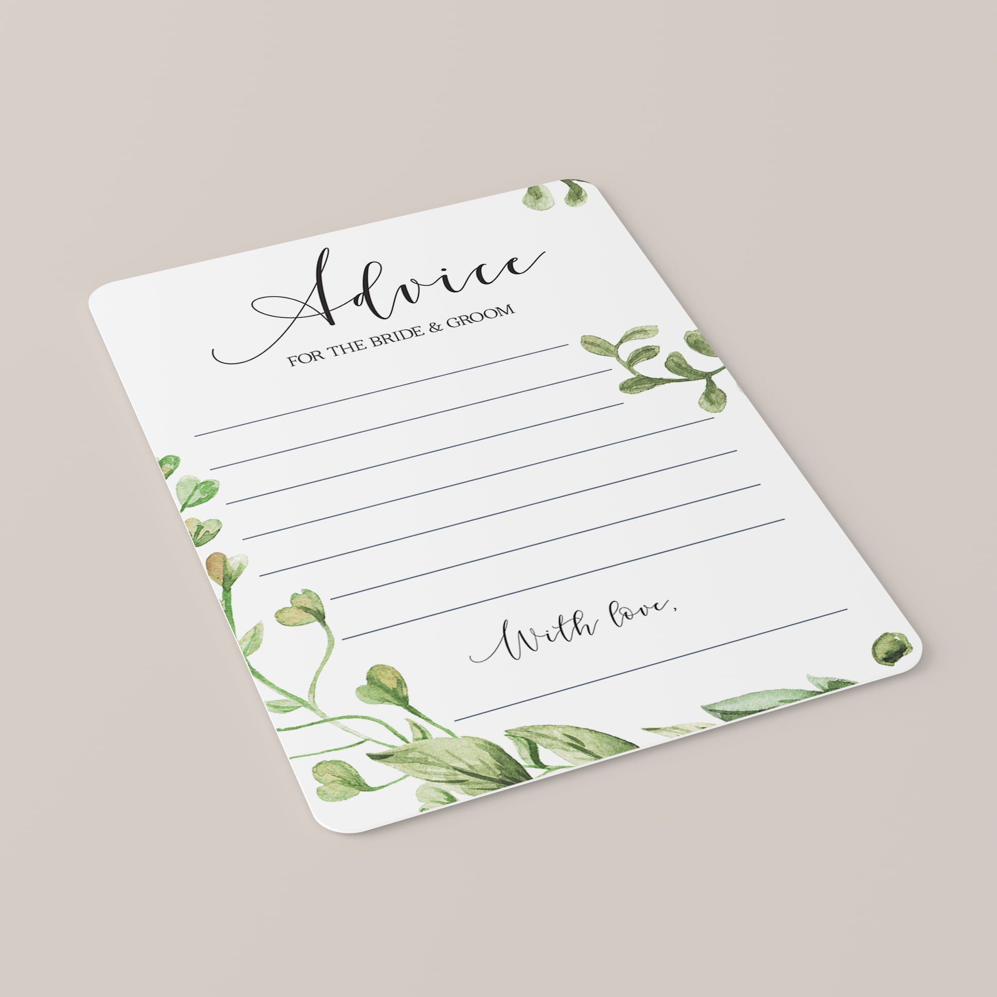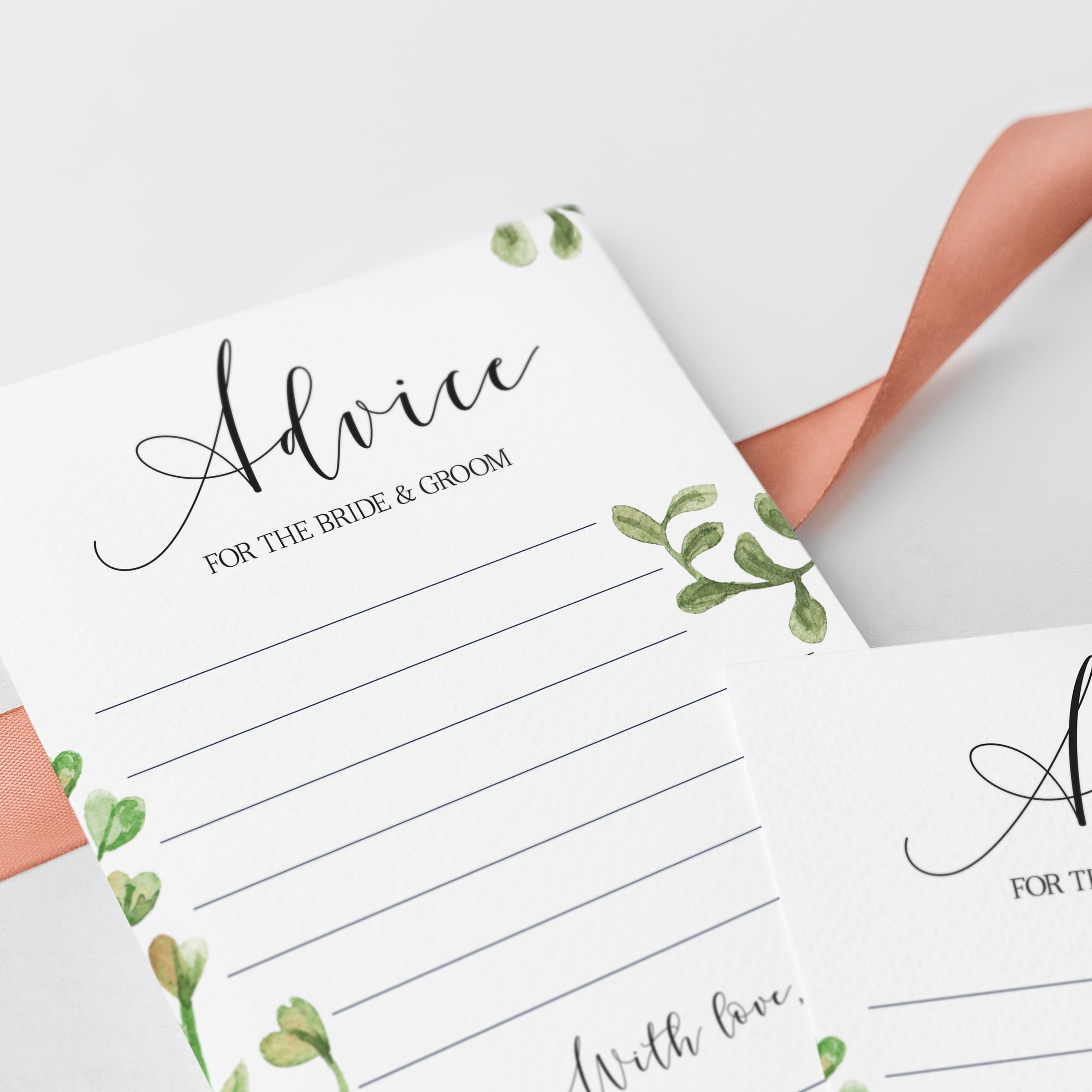 Create meaningful keepsakes with these garden bridal shower advice cards. They're the perfect addition to any garden wedding or green themed bridal shower. Let every guest write down their advice for the newly-weds and collect the cards to become a treasured keepsake.