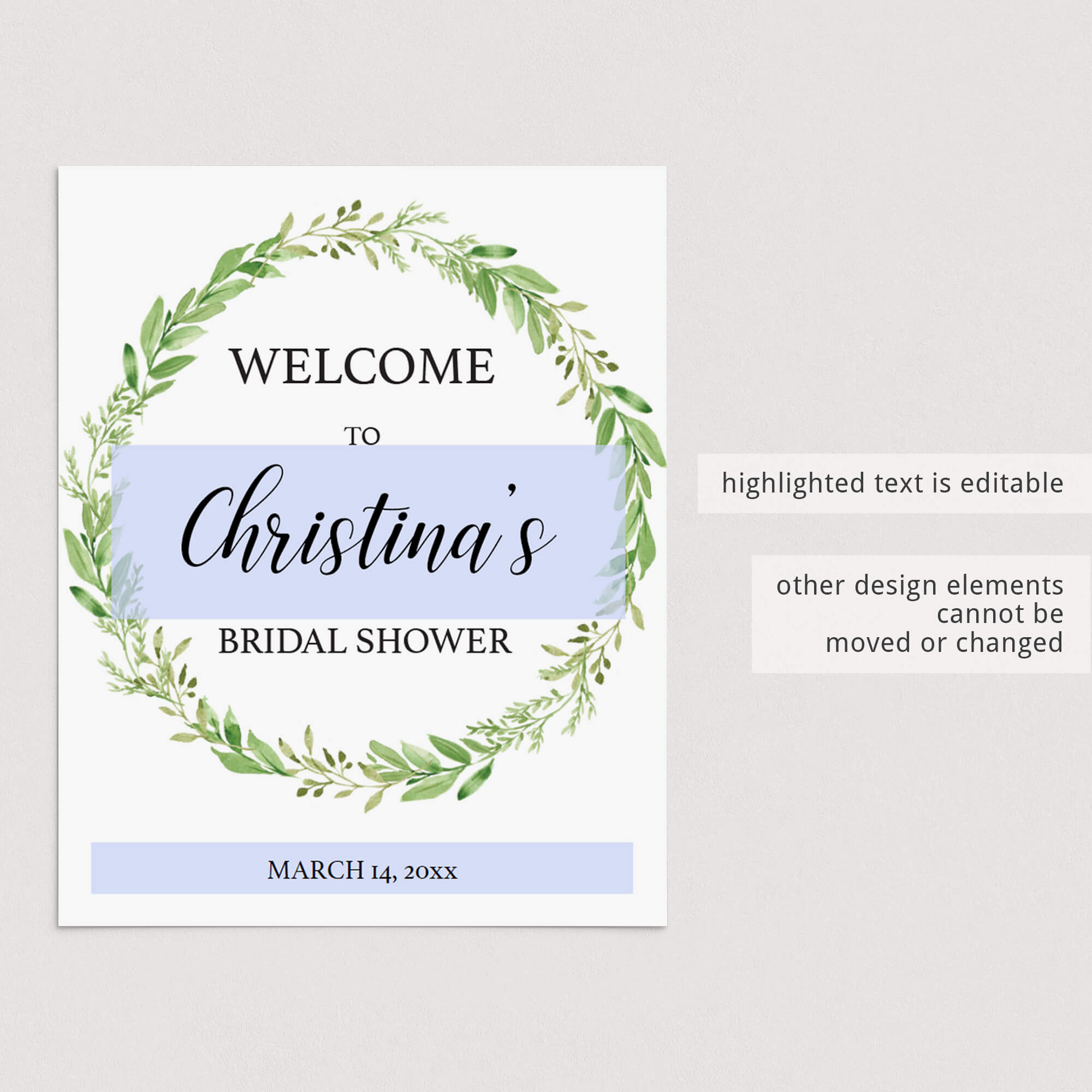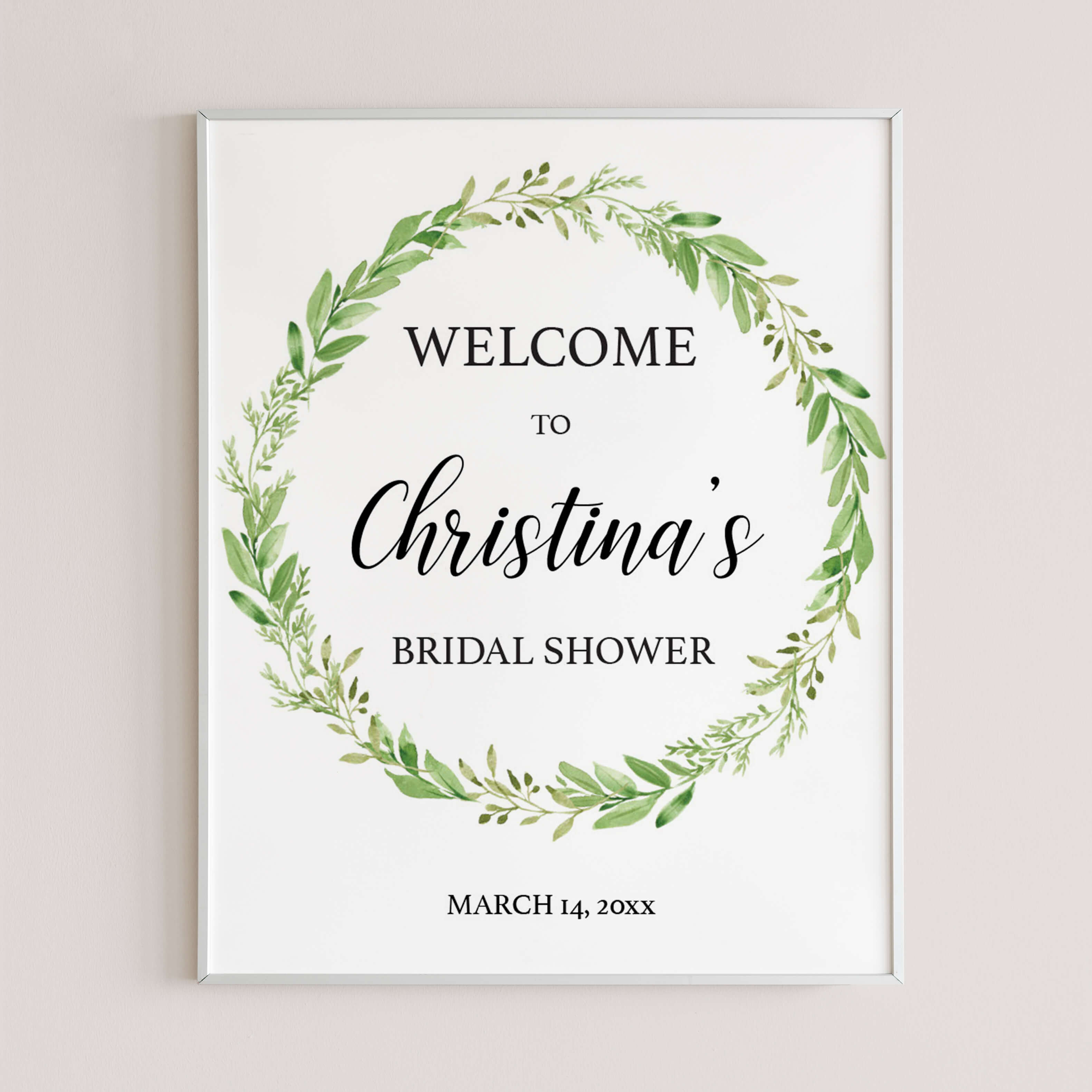 Welcome your bridal shower guests to the party with this beautiful greenery wreath welcome sign. The sign will instantly take your bridal shower to the next level!