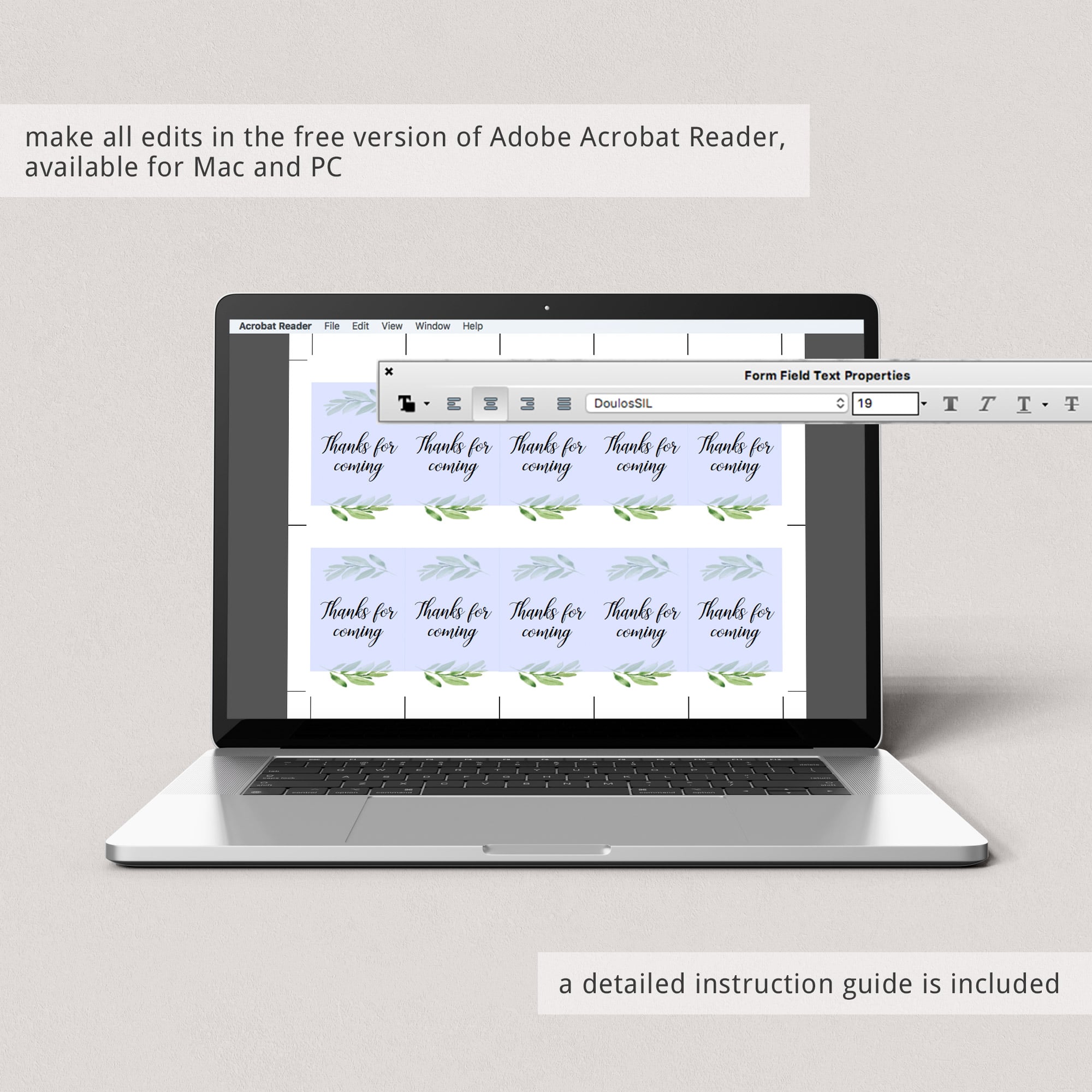 The favor tag is an editable PDF template, so that you can easily personalize the labels yourself and give them a personal touch. For the thank you cards, a template for both a folded and a flat card is included.