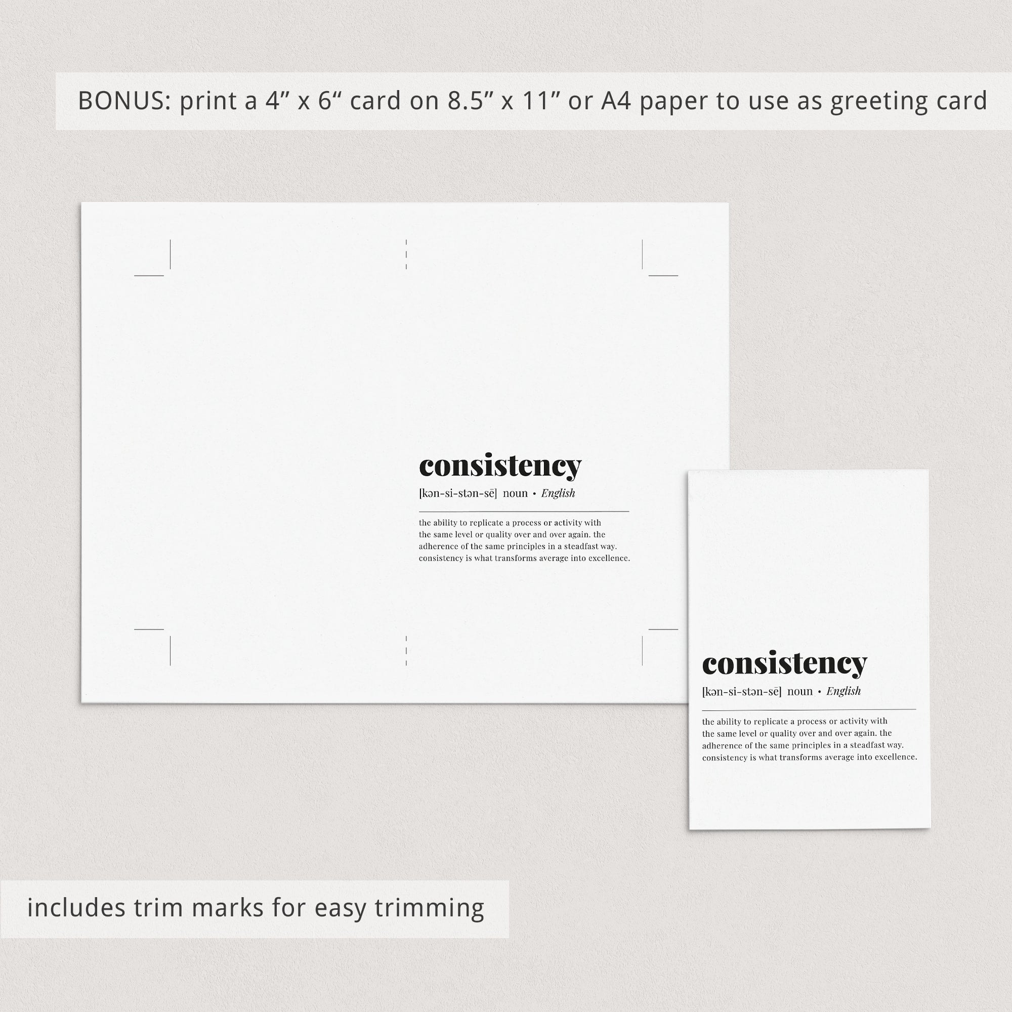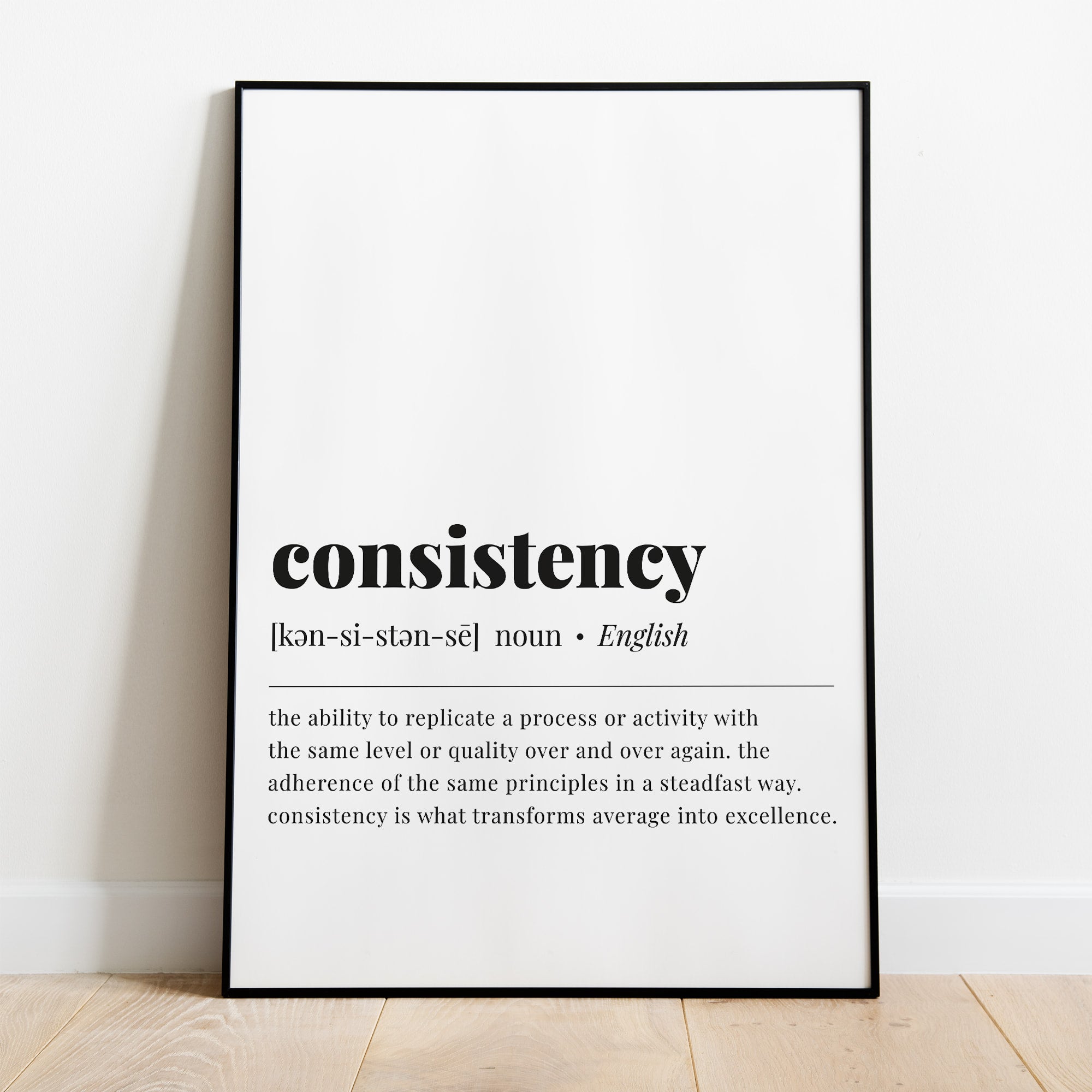 Are you looking for some motivational wall art? Look no further! This modern consistency definition print is designed to motivate and encourage you. The consistency poster is sure to add a motivational reminder to any space. Perfect for your (home) office, classroom or as a gift for an entrepreneur.