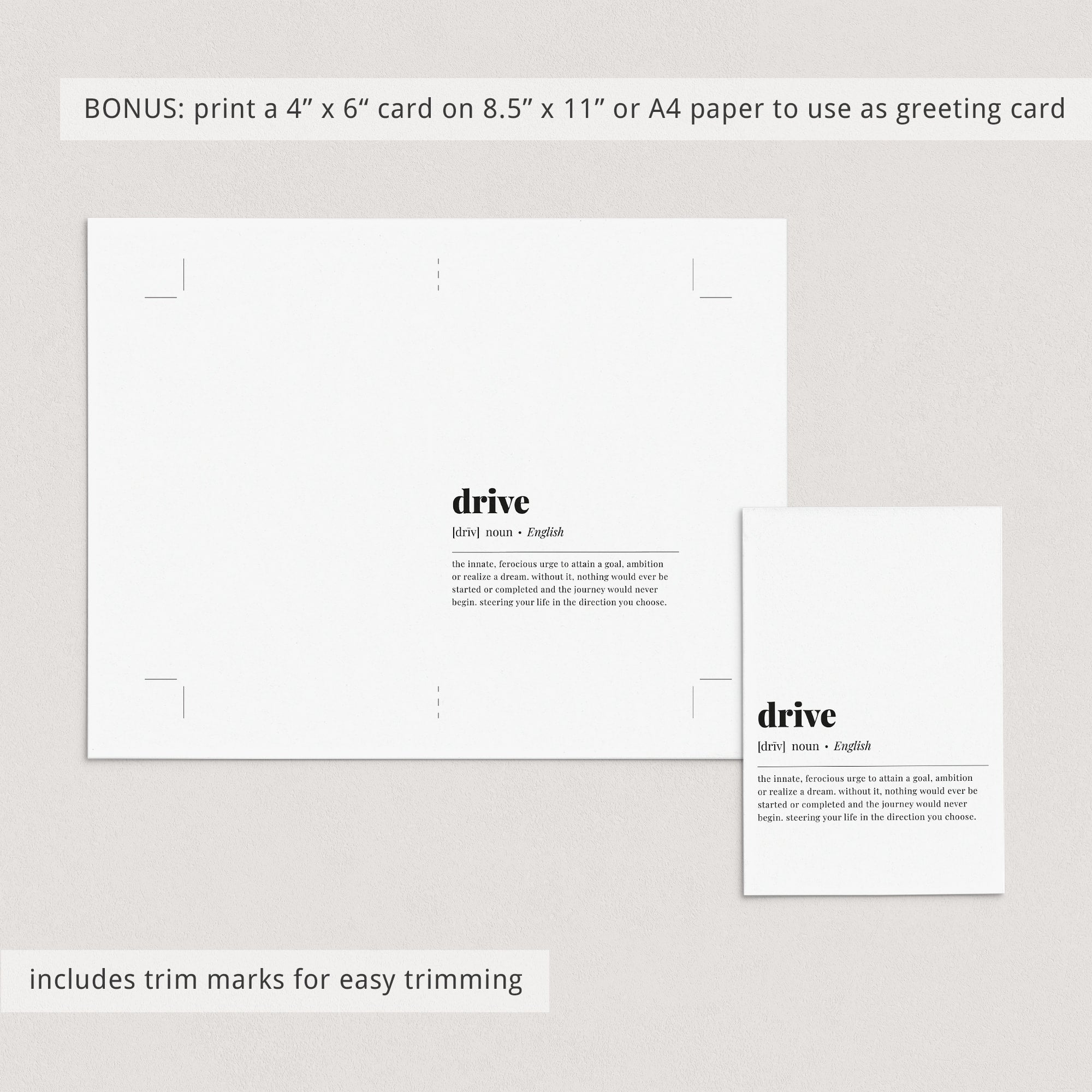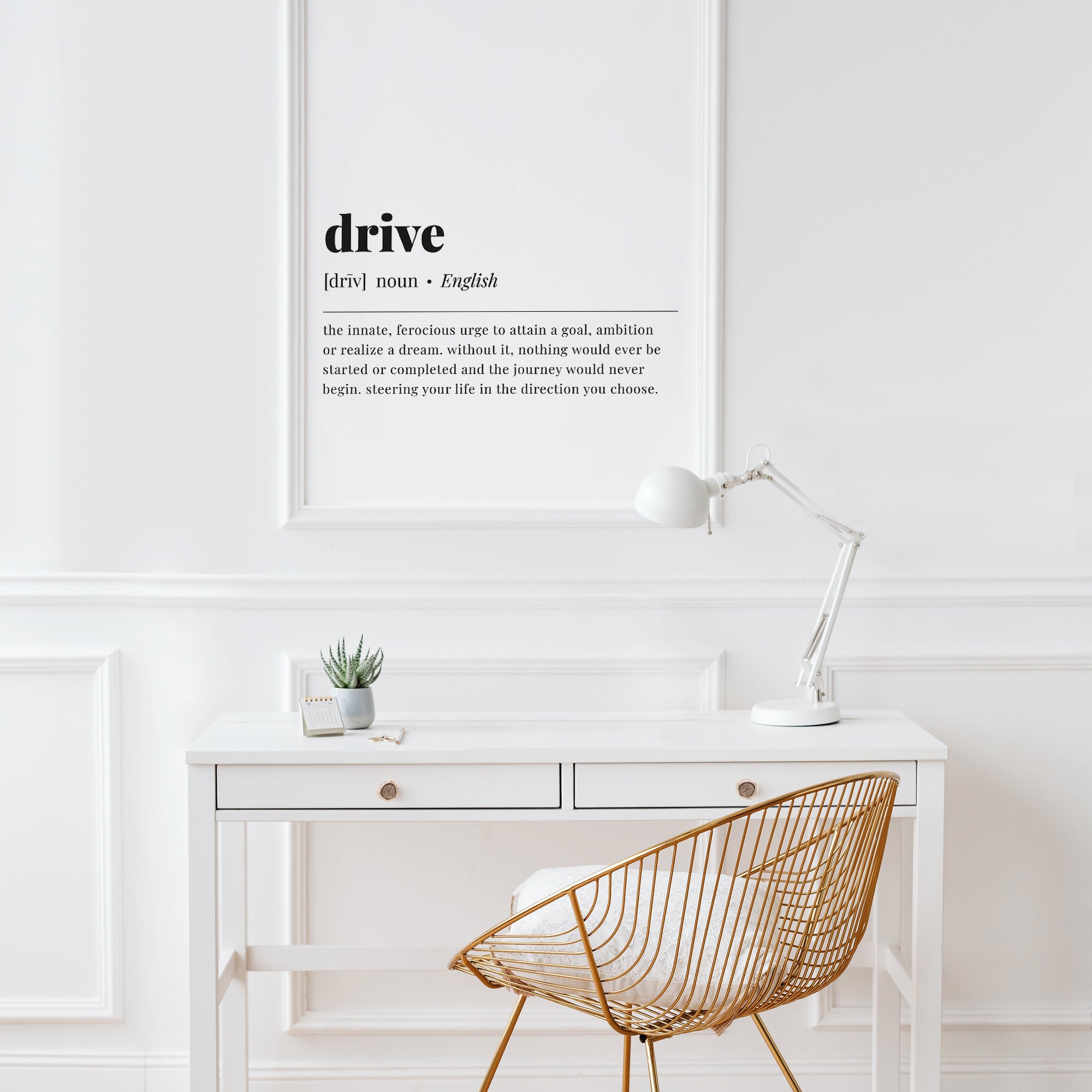 Are you looking for some motivational wall art? Look no further! This modern minimalist drive definition print is designed to motivate and encourage you. The drive poster is sure to add a motivational reminder to any space. Perfect for your (home) office, classroom or as a gift for an entrepreneur.