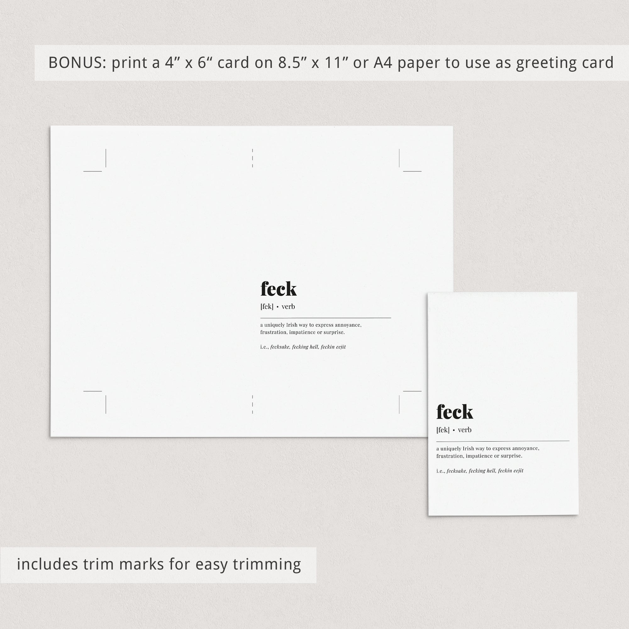 Are you looking for a funny Irish slang print? Look no further! This modern minimalist feck definition print is perfect for you.