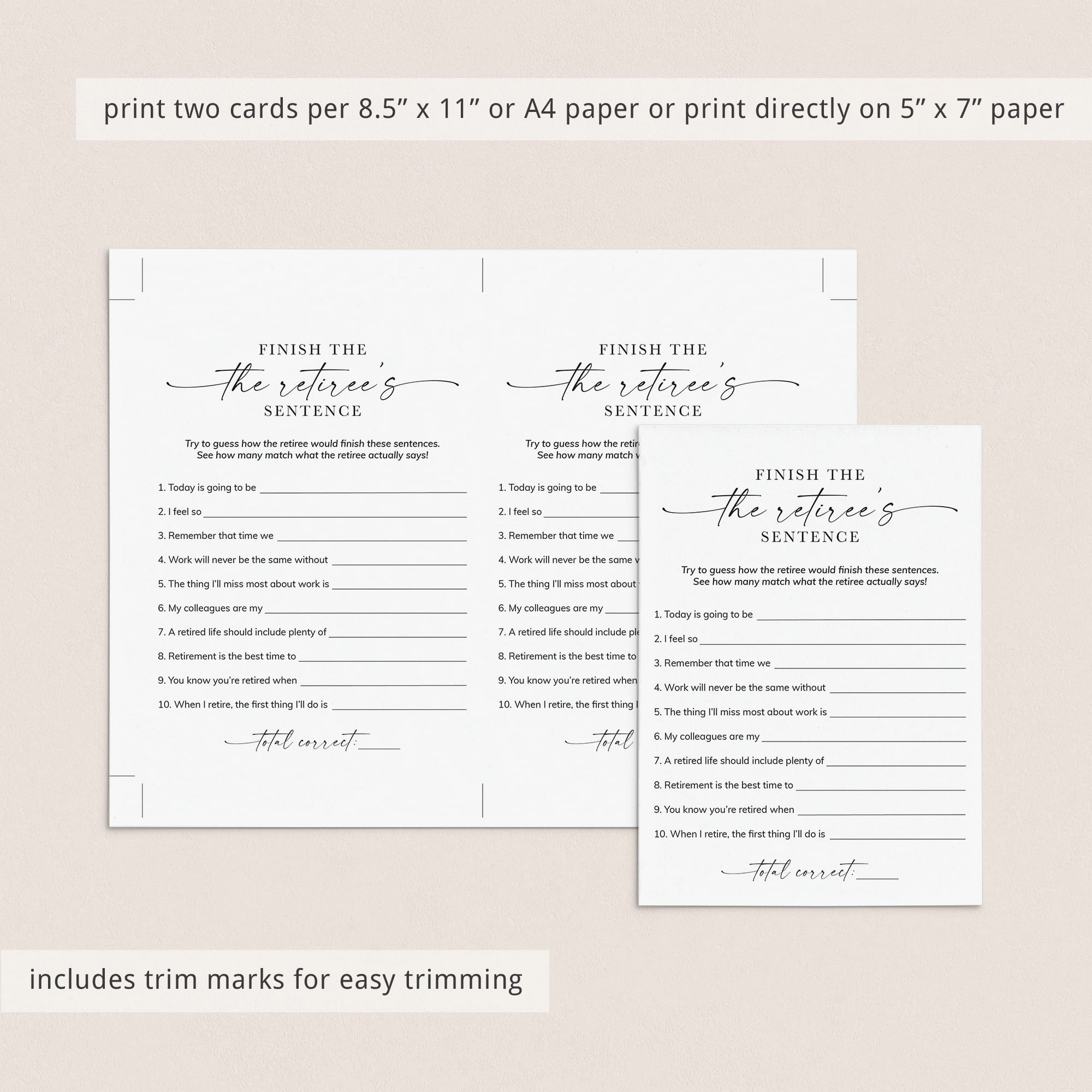 Finish The Retiree's Sentence Printable Retirement Icebreaker Game