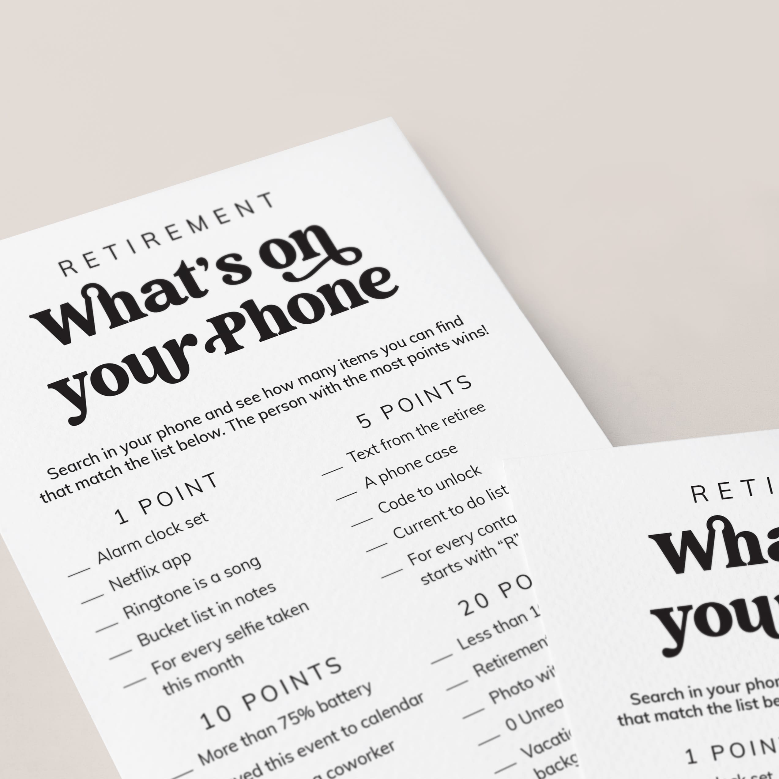 Most guests arrive at a retirement party with little more than their phone and a gift in hand. Sound familiar? Then this retirement party What’s On Your Phone raid game with creative vintage script is the perfect icebreaker! A modern take on the classic What’s In Your Purse, this activity is both fun and easy to play.