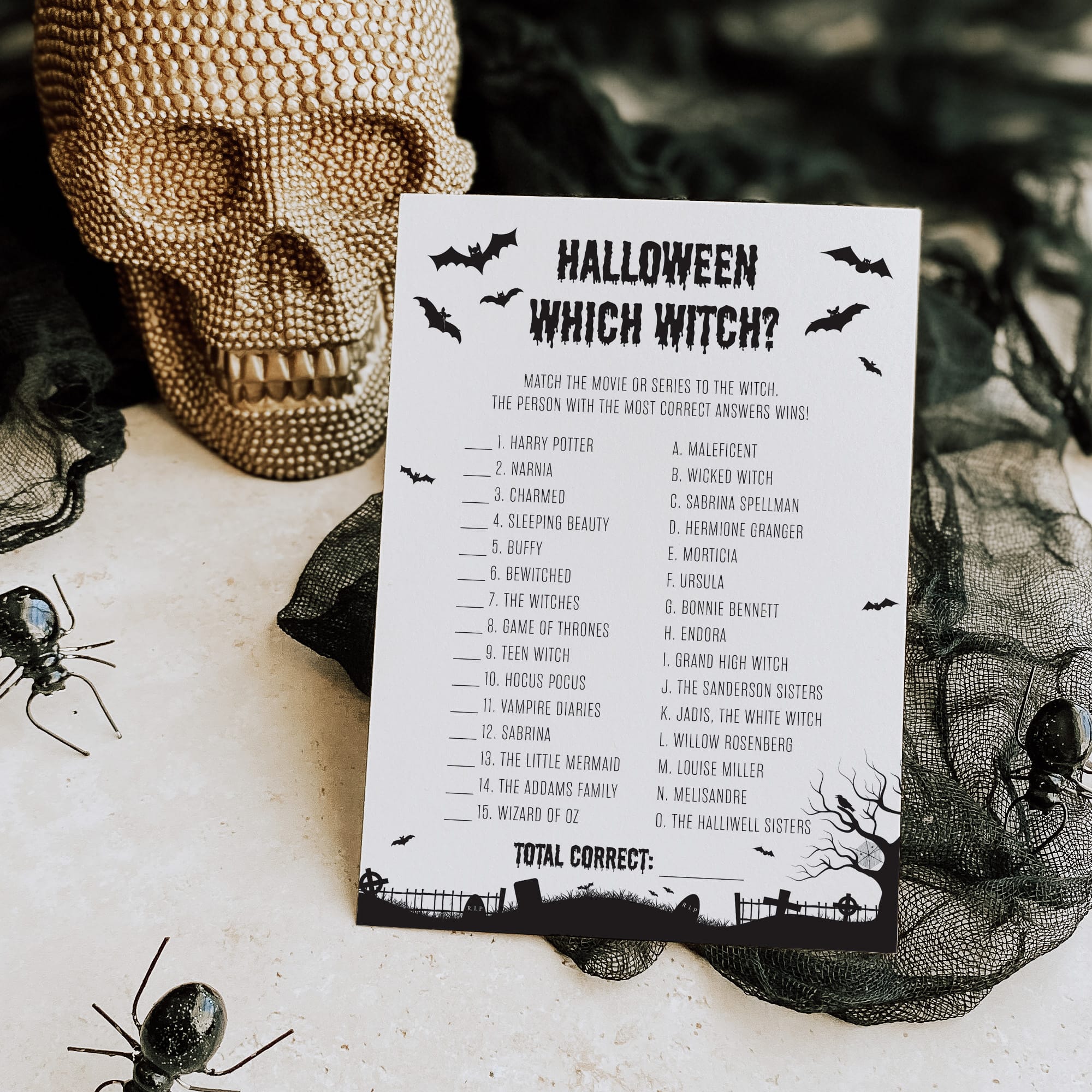 Are you hosting a classy black-and-white Halloween bash and looking for some last-minute entertainment? This huge Halloween Party Games Bundle with 12 popular games will definitely get your guests mingling and laughing. Everyone will love these ready-to-go Halloween games – simply download, print and play! The games are great for Halloween parties, family game nights, classrooms and Halloween office parties.