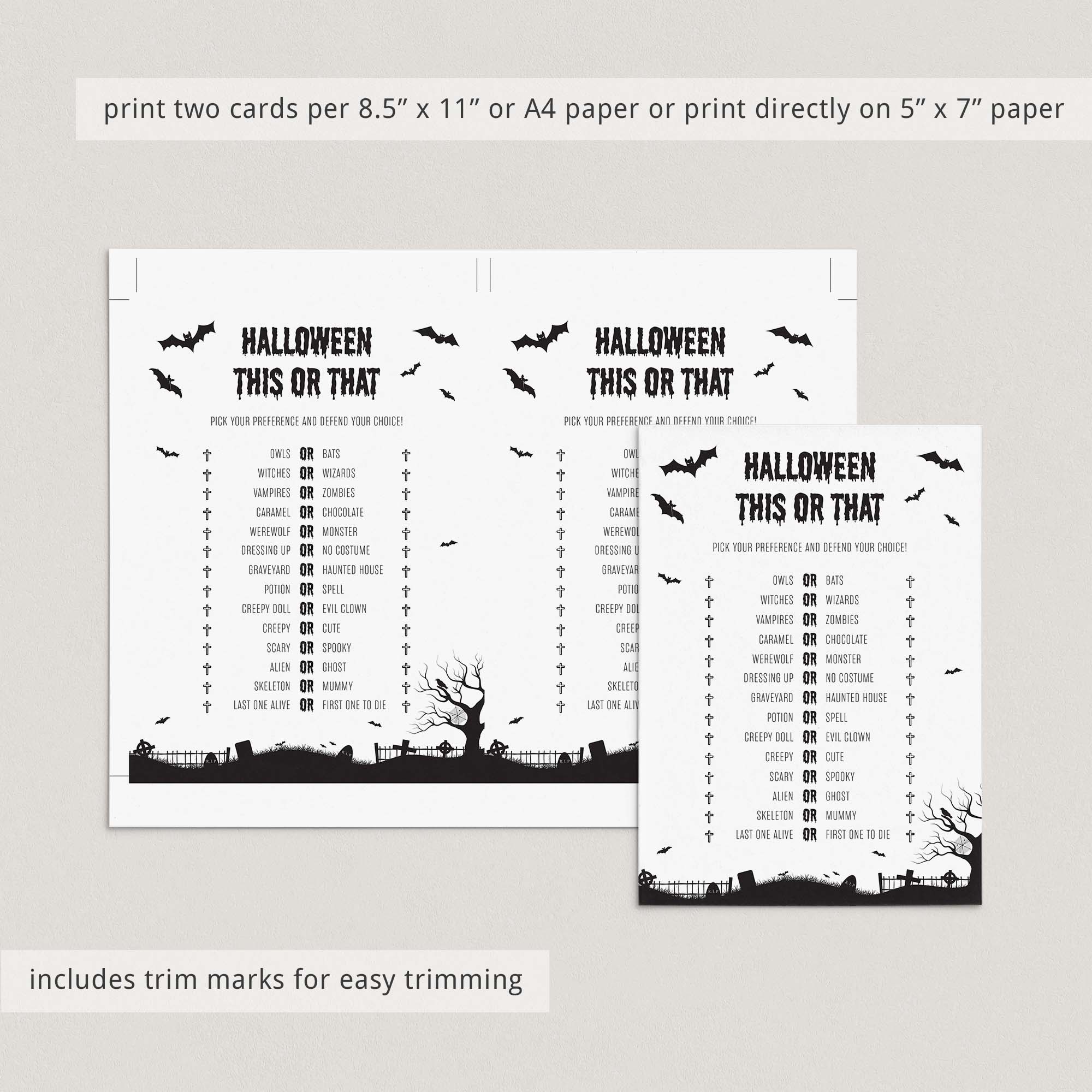 This black and white Halloween Party games bundle with graveyard and bats includes the following 12 fun and popular games: