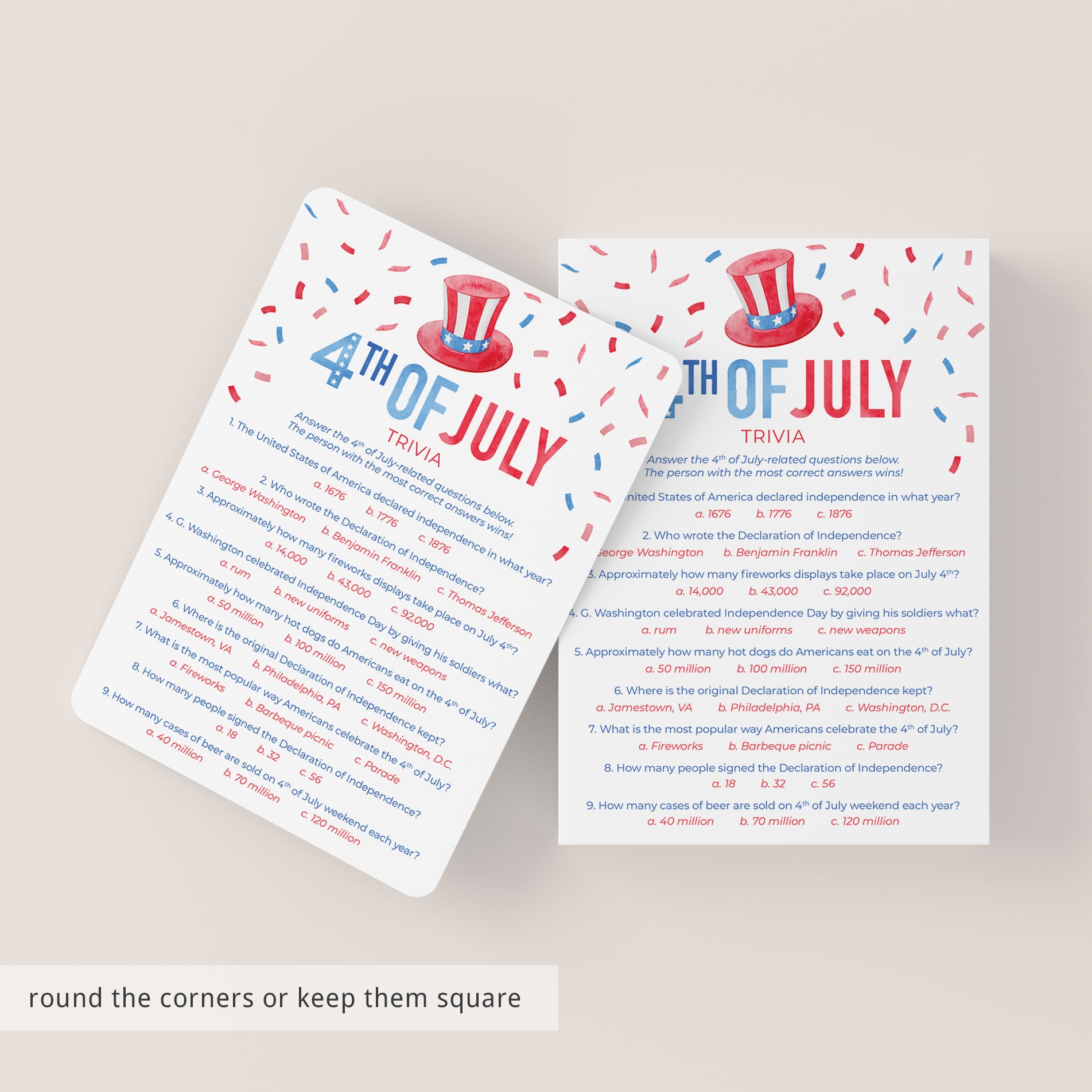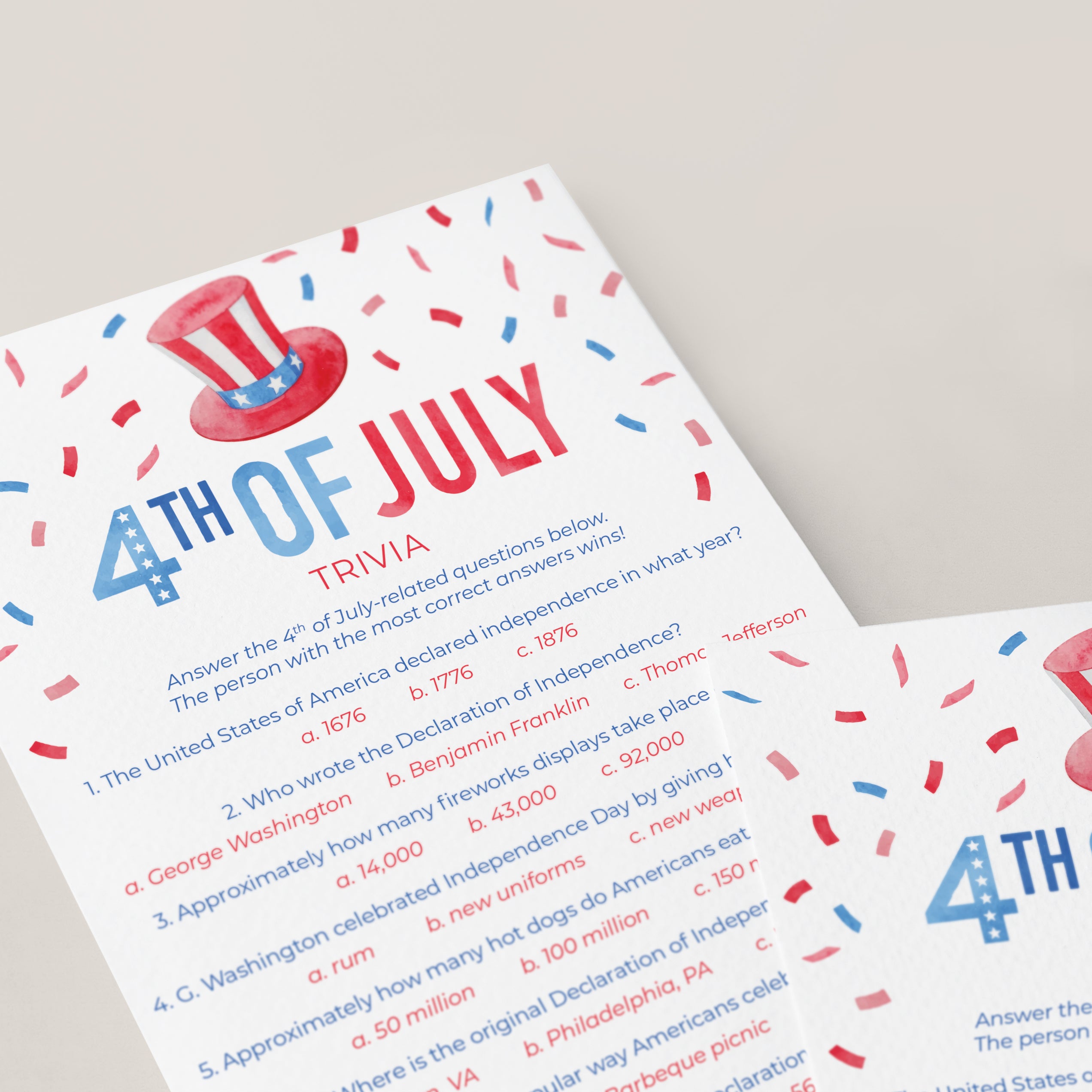 Are you hosting a 4th of July party? Test your guests knowledge of Independence Day with this fun 4th of July Trivia quiz. It is a great game for family and friends and you will learn some fun facts about America. Just in case you are having trouble figuring out the answers, an answer key is included.