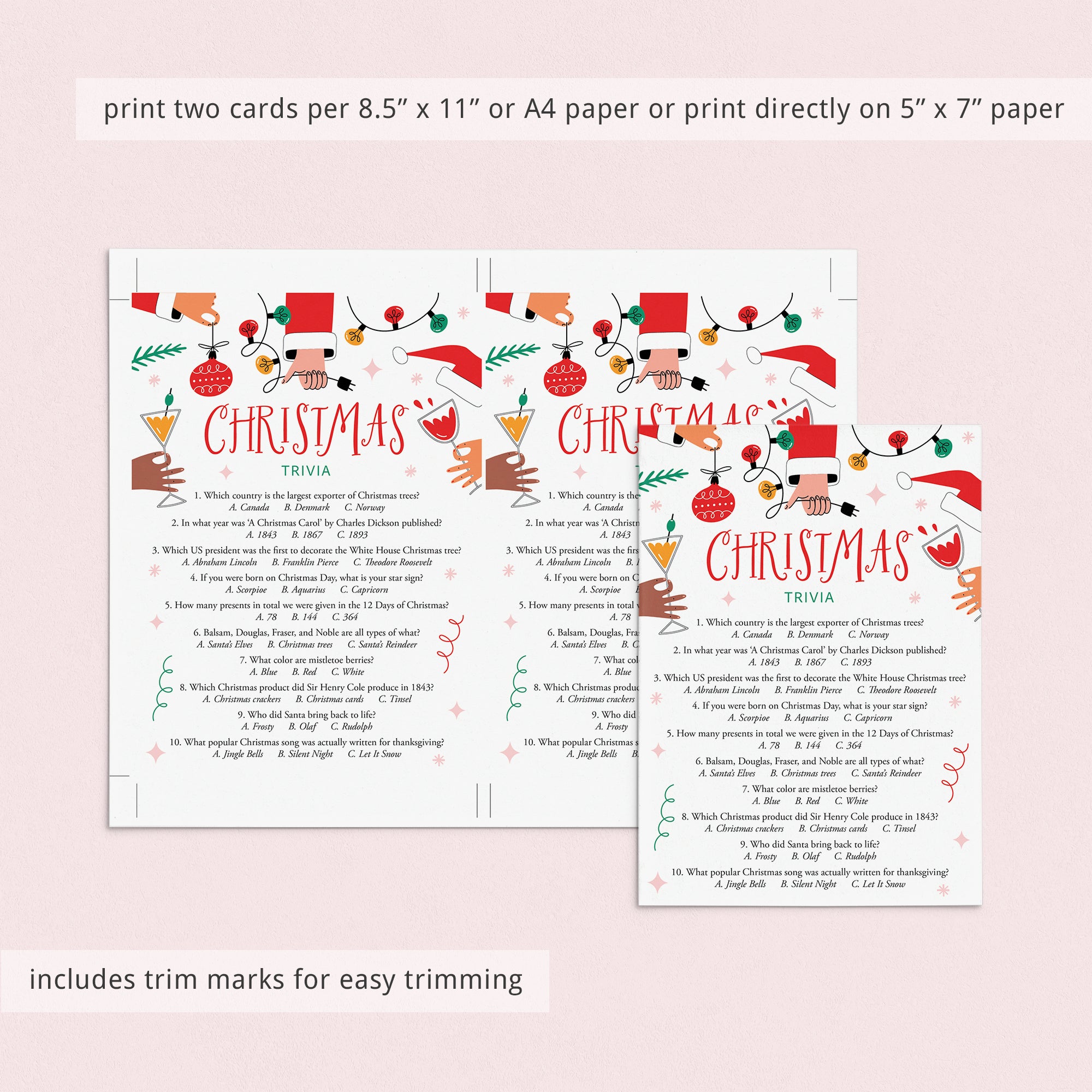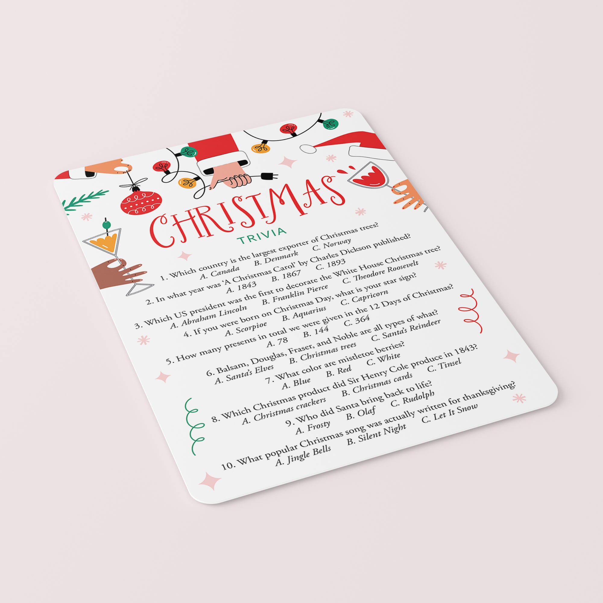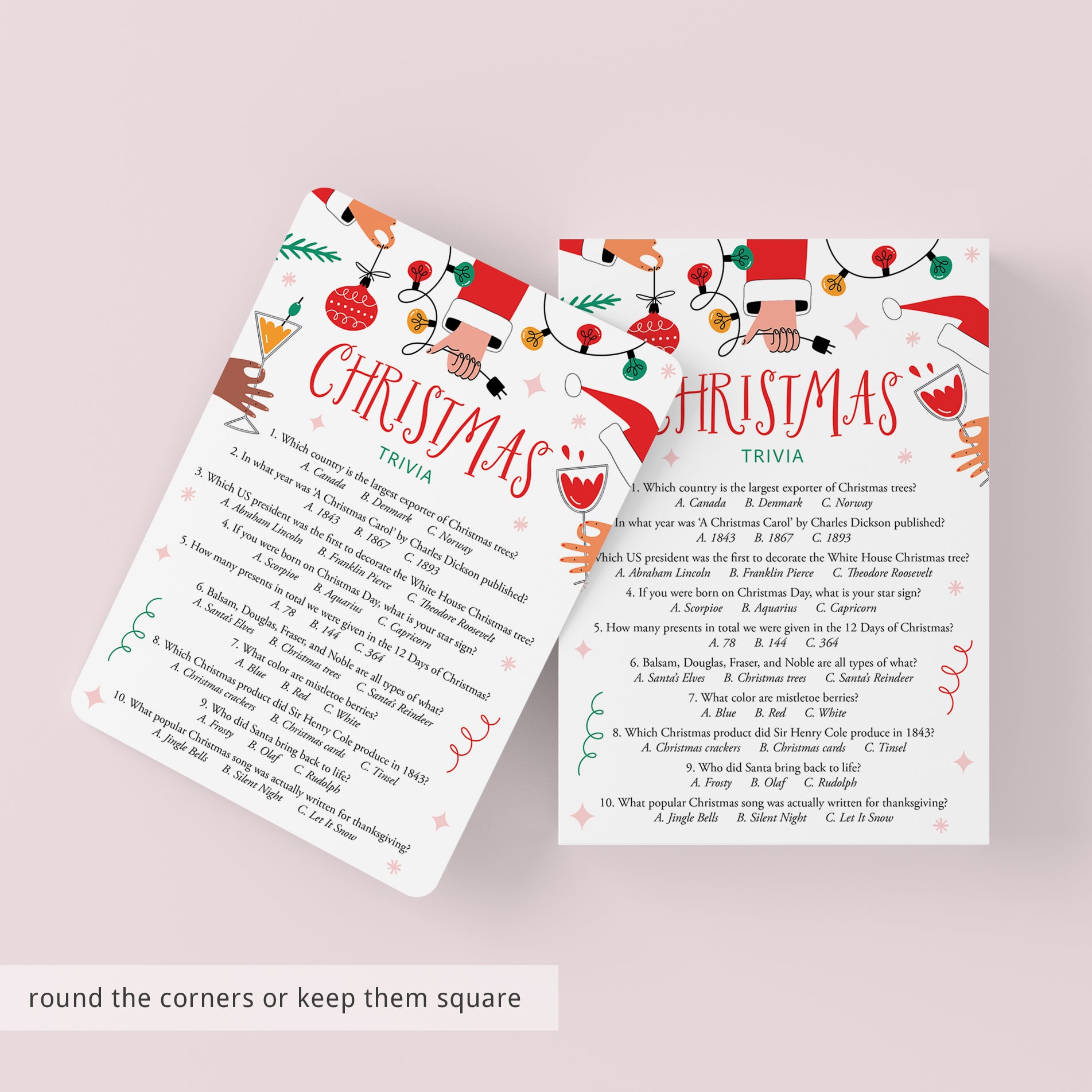 Are you hosting a Christmas party for adults? Use this funny Christmas Trivia Quiz to test your guests Christmas knowledge. Which country is the largest exporter of Christmas trees? And what popular Christmas song was actually written for Thanksgiving? Play this Christmas trivia game to find out! It’s a great challenging game to play at your Get Lit Friendsmas party or Holiday Office party.
