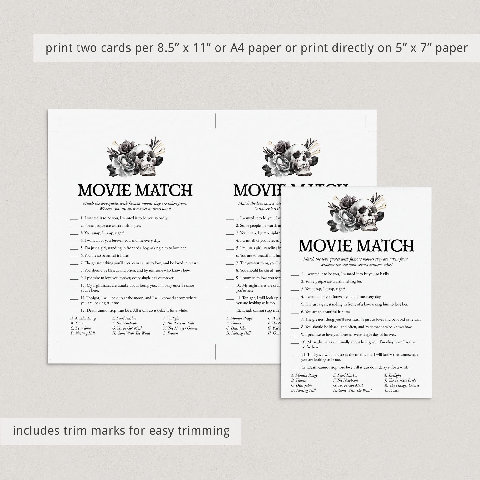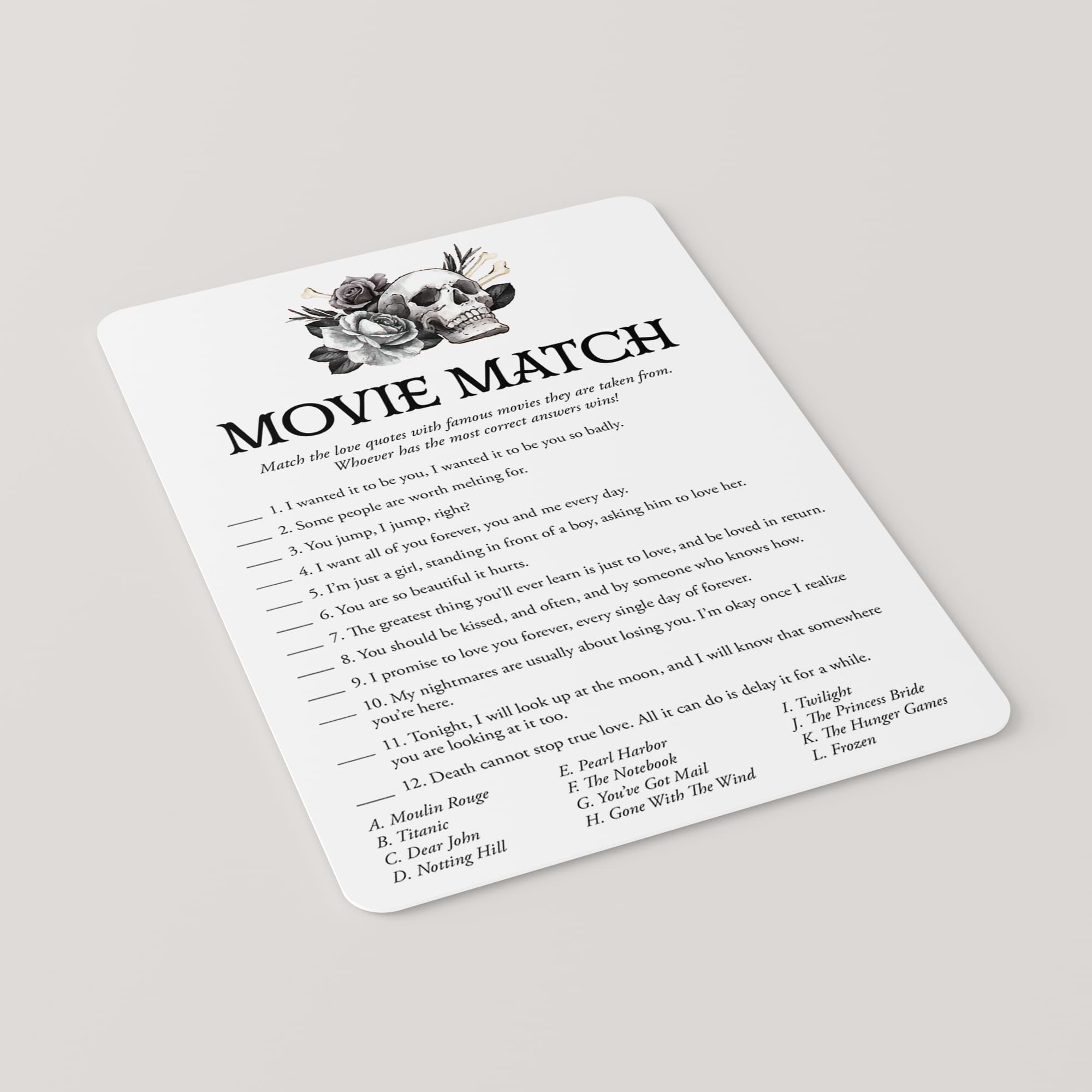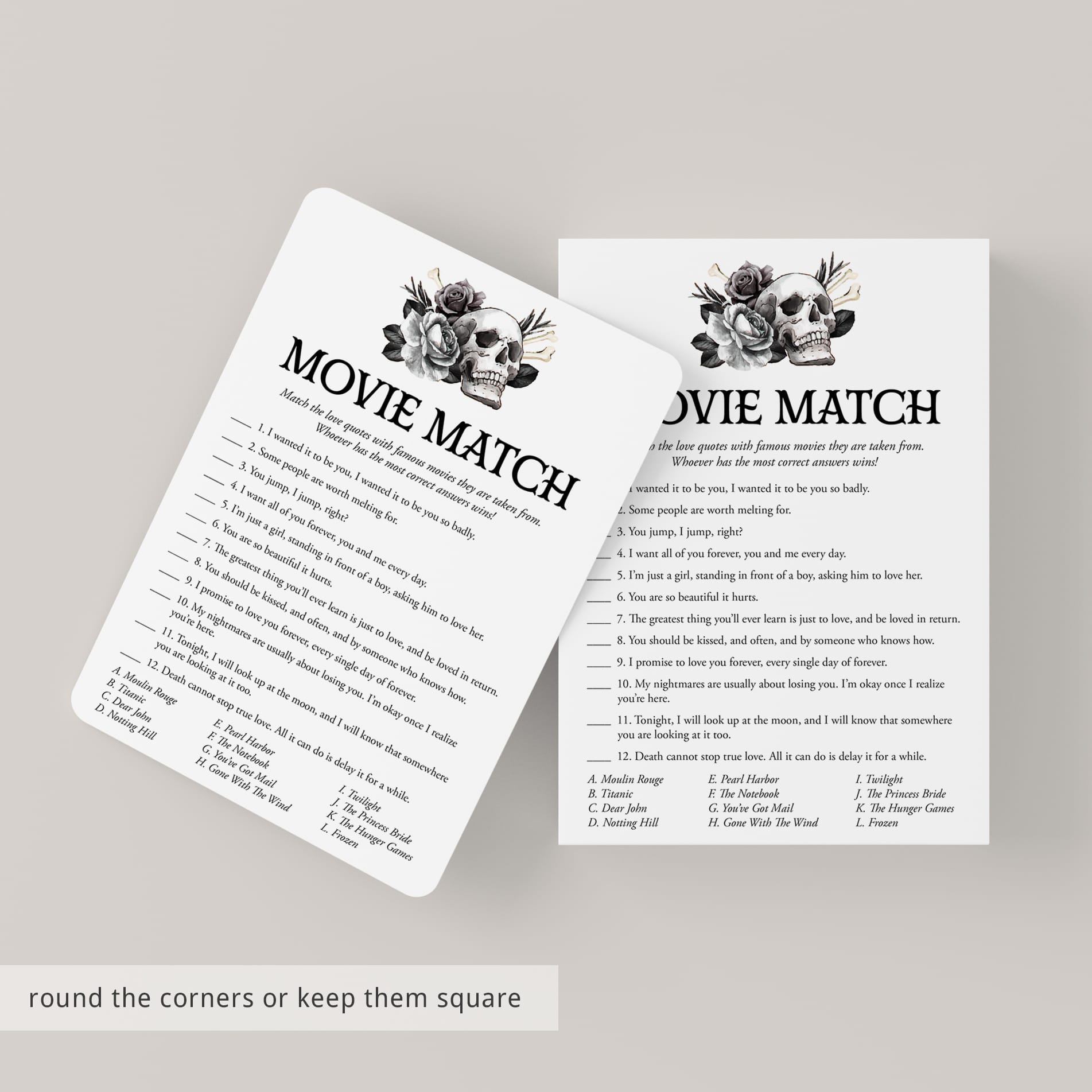 You think you know your romantic movies? This bride or die theme Romantic Movie Match game will put you to the test. It's the perfect game for romantic movie fans and will sure get the girls at your Halloween bridal shower or Bride or Die theme bach party interacting, laughing and enjoying the thrill of competition.