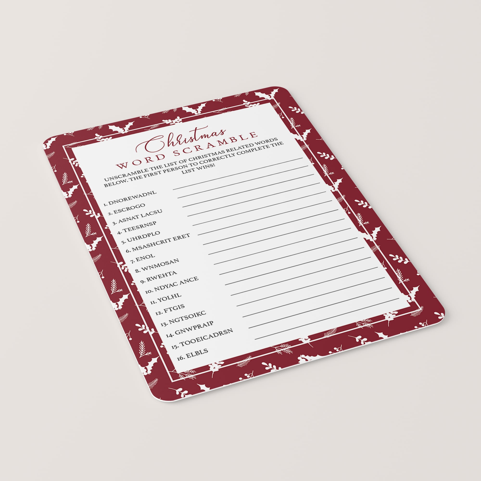 • Christmas Word Scramble (answer key included)