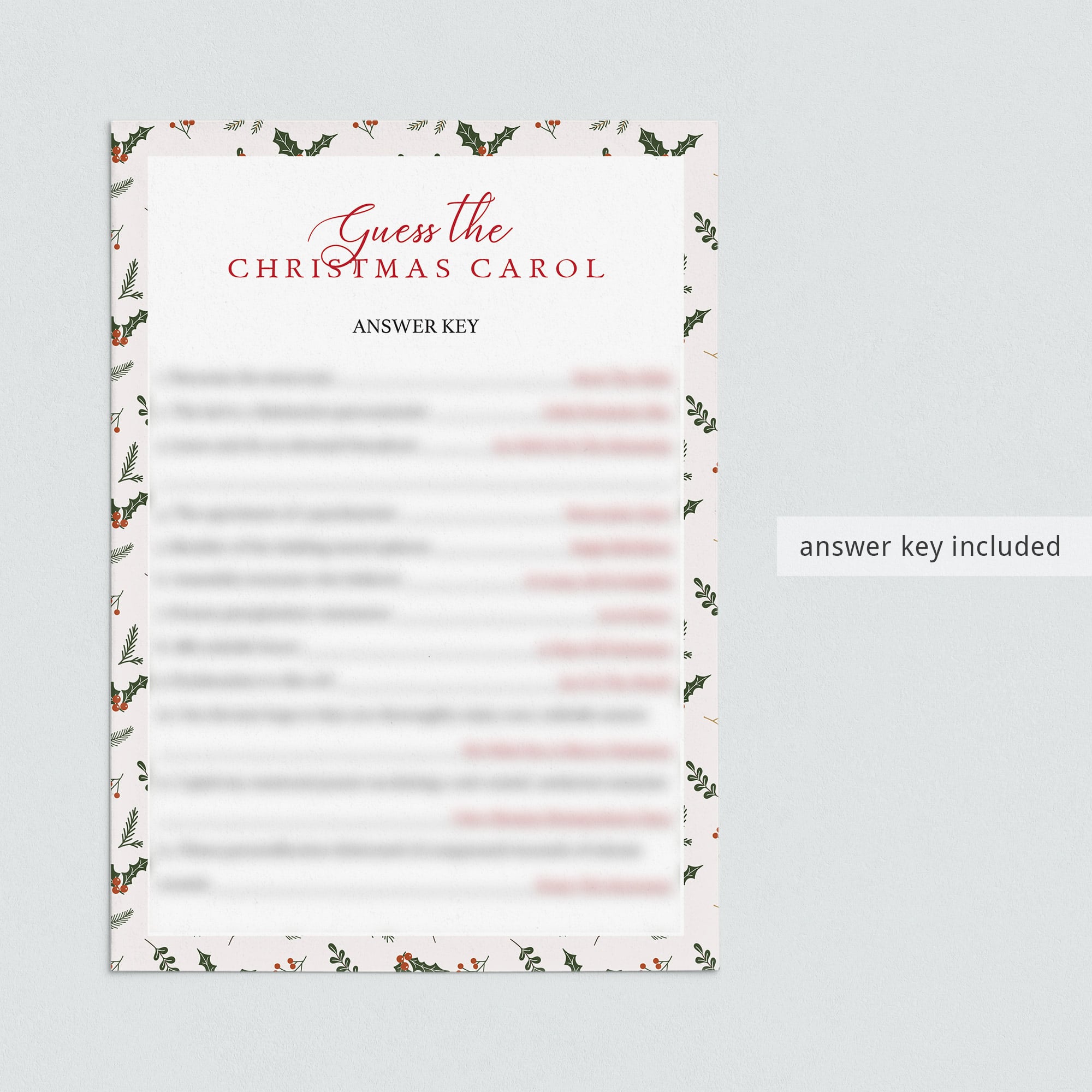 Just in case you have trouble figuring out the Christmas songs, an answer key is included.