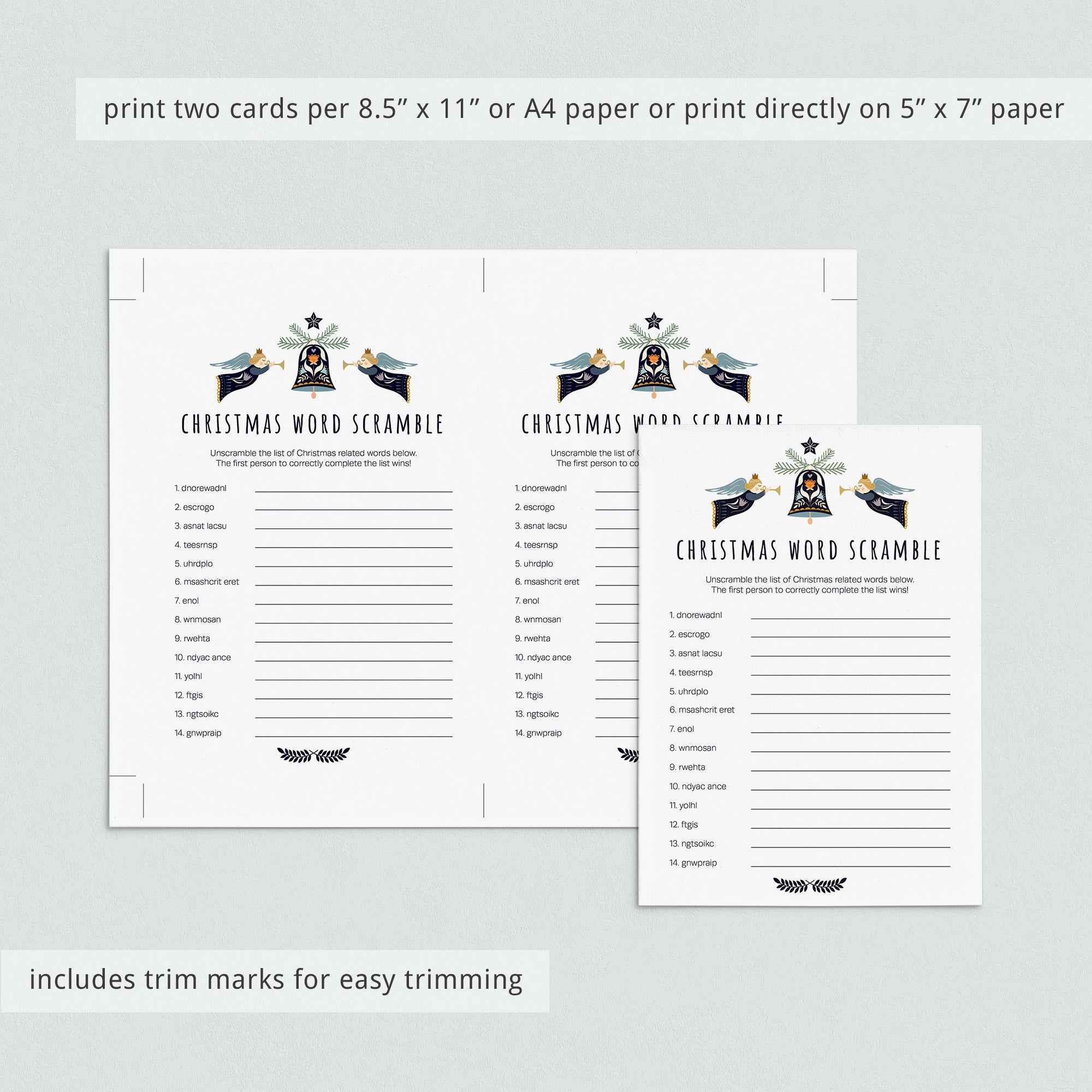 This Christmas Word Scramble is an instant download. After purchase you will receive a download link immediately on screen. Also within minutes of your order and payment, an e-mail will be sent to you with a link for your download.