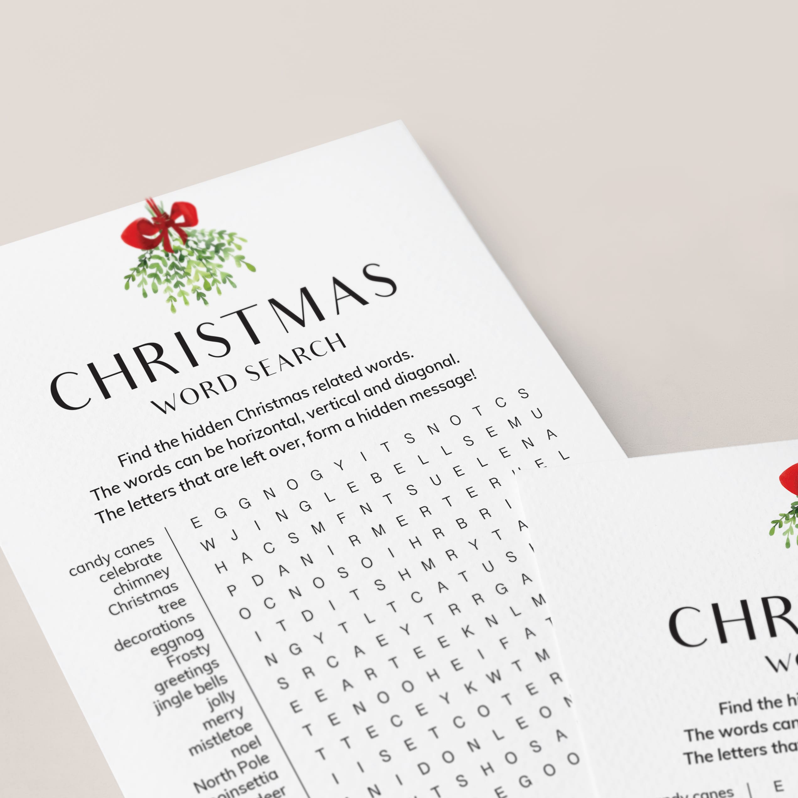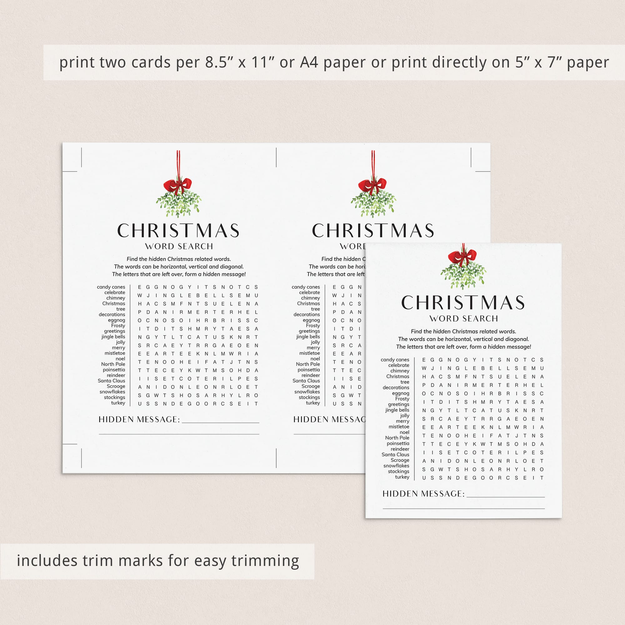 Are you looking for a fun and easy game to play at your holiday party? Play Christmas Word Search with these beautiful game cards with watercolor mistletoe.