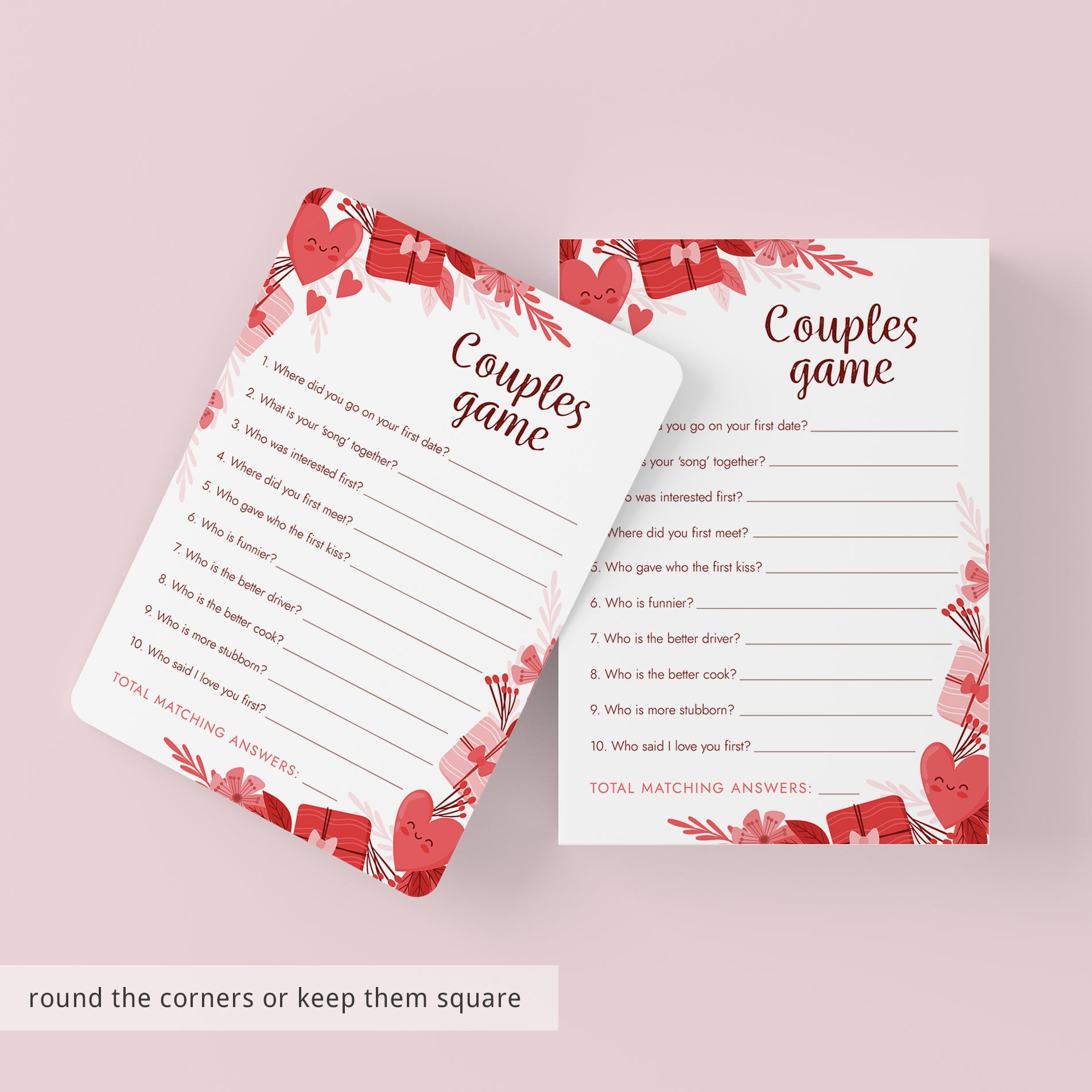 Are you hosting a party and looking for a fun icebreaker game? Play this Couples Game! Whether you just have a few friends over or throw a large scale Valentine’s Day party this Couples Game will be a fun addition and a great conversation starter.