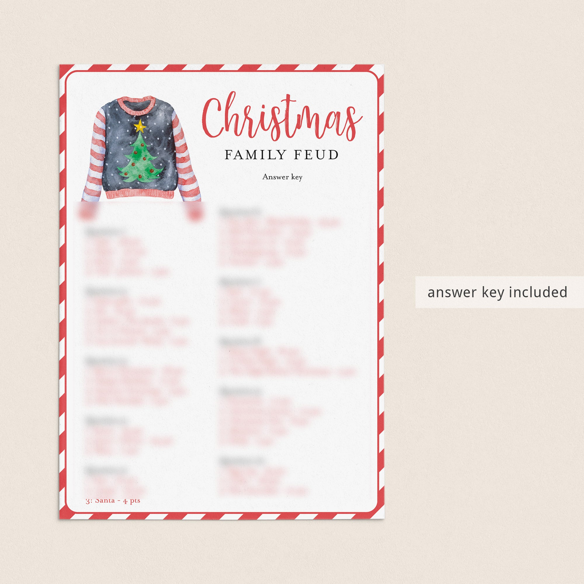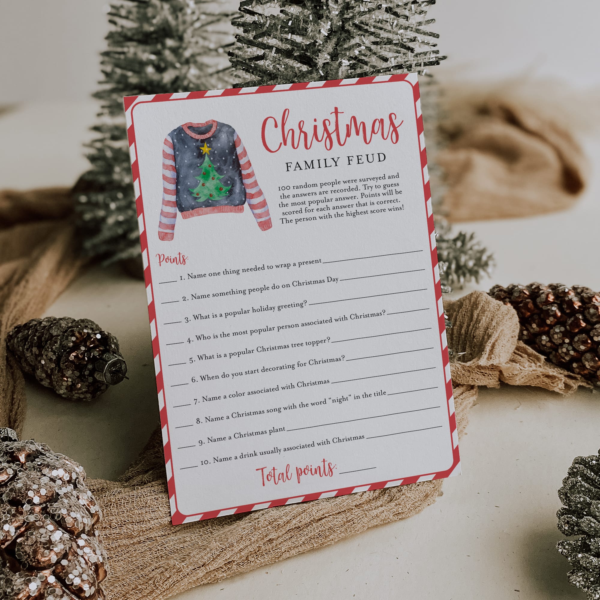 Are you looking for a fun game to play at your Ugly Sweater Christmas party? Play Family Feud with this funny game card with tacky Christmas jumper.