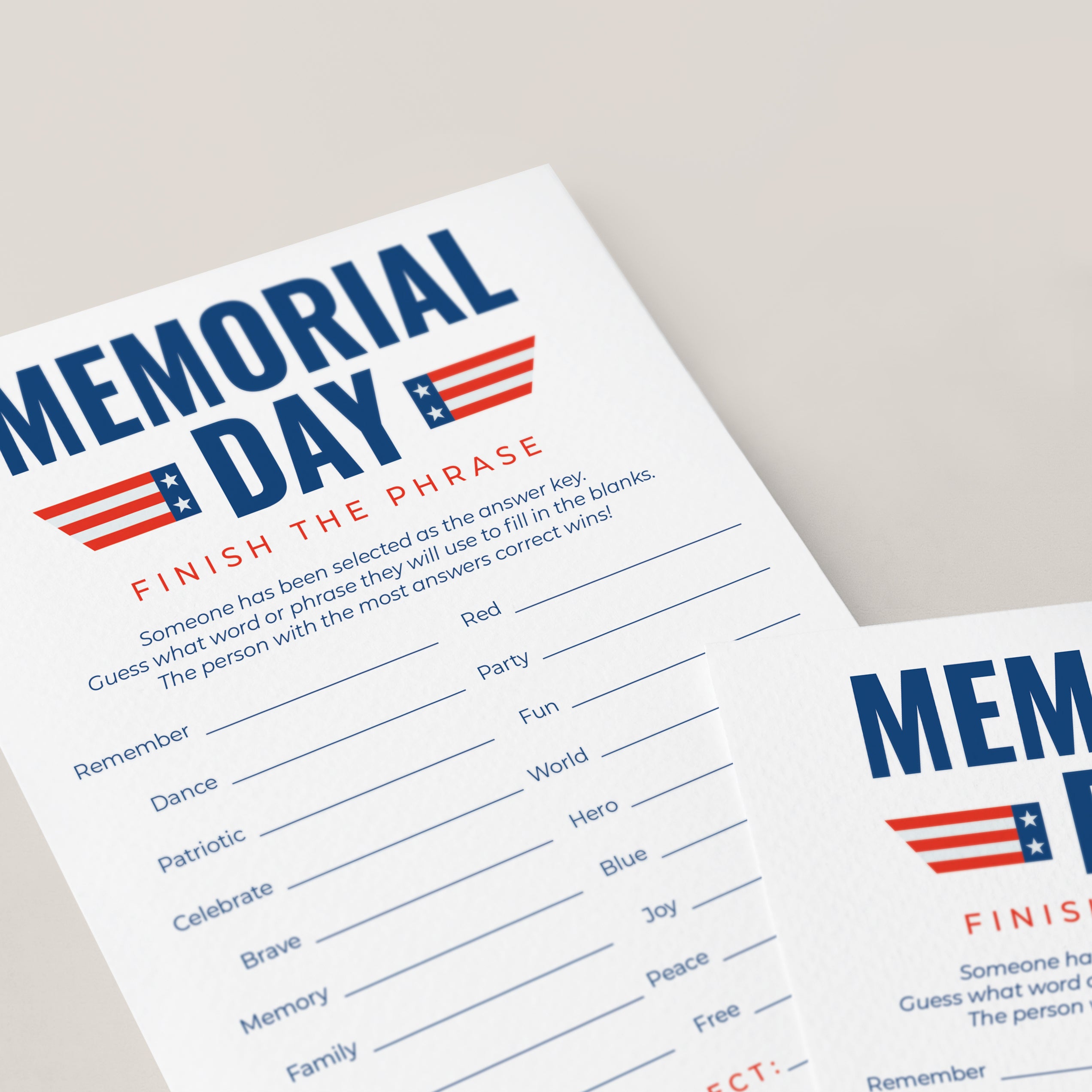 Memorial Day Finish The Phrase is a great game to play with family. It is a fun activity for kids and adults of all ages and very easy to play. You can play this game in classrooms, at the office or with friends and family. It's the perfect addition to your Memorial Day weekend celebration.