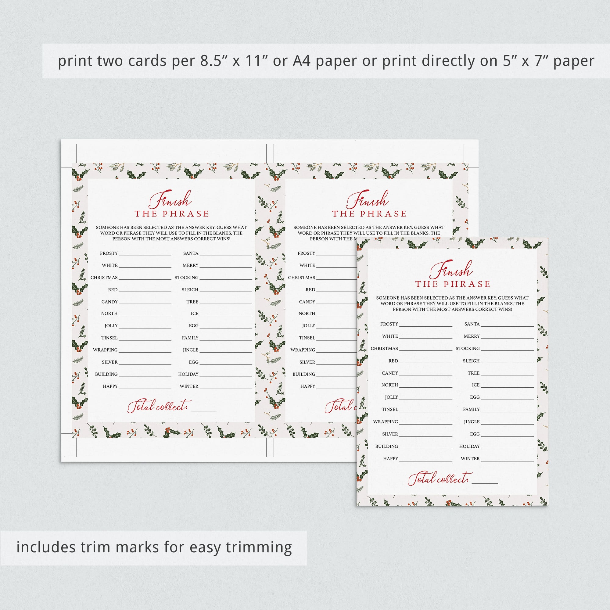 The Christmas games are instant downloadable files. The games can be printed at the comfort of your home or ordered from a local or online print shop.  A detailed instruction guide, with tips & tricks on printing, trimming and paper choice is included.