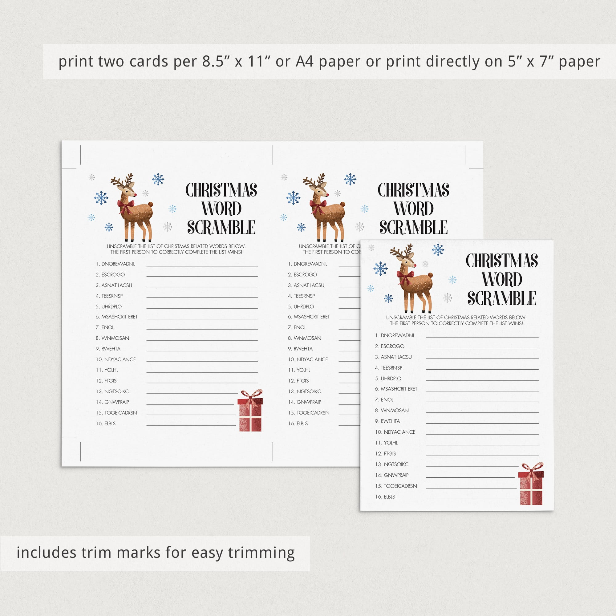 This Christmas word scramble puzzle is an instant download, so simply download and print the sheets as many times as you need. Print right from your computer in a matter of minutes or have the game printed at your favorite print shop.