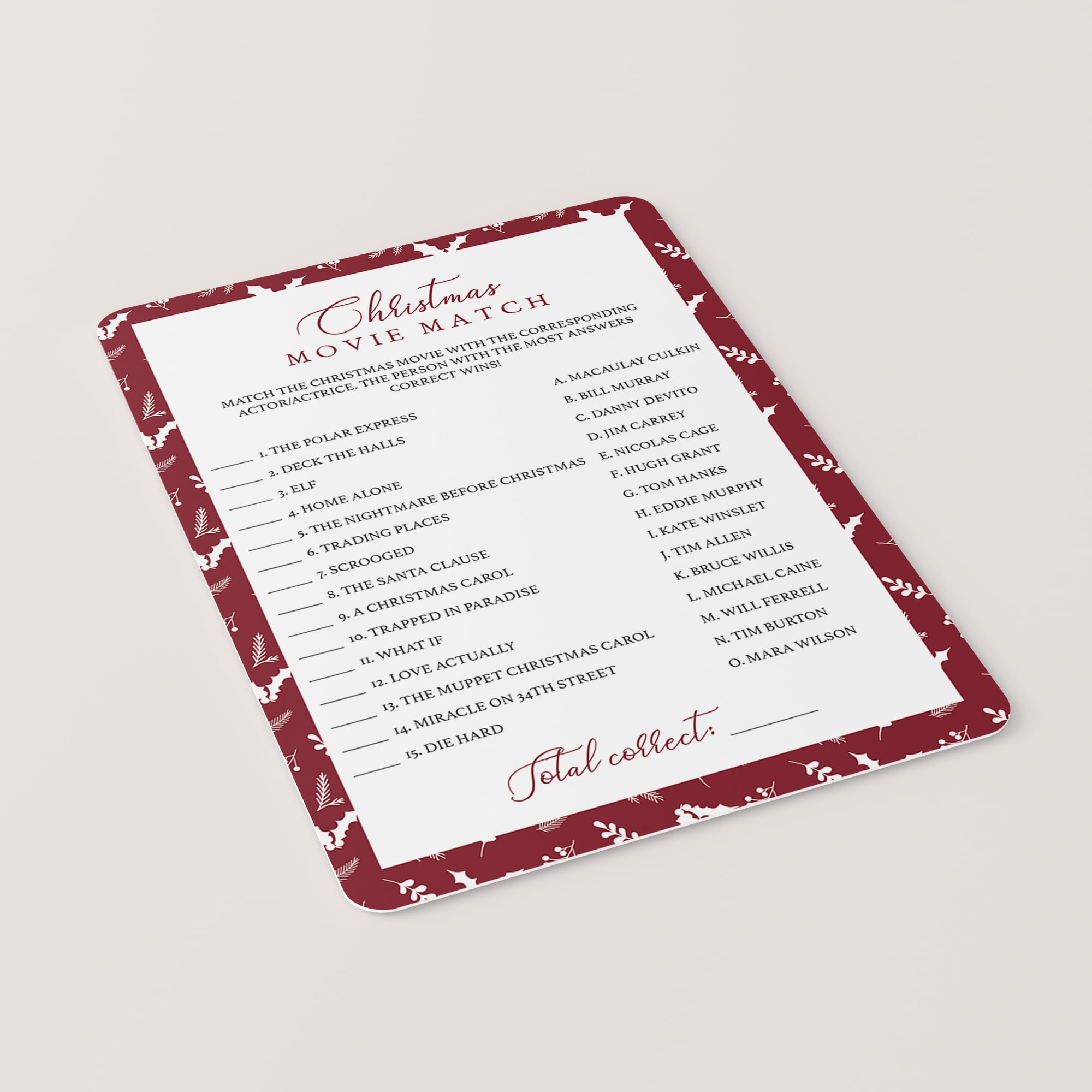 Are you looking for a funny game for your holiday party? Play Christmas Movie Match. This Christmas movie game will have everyone racing to be first to match up the lead actor to the Christmas movie. If any of your friends, family members or co-workers, are movie buffs, then they might have a leg up when playing this funny game.