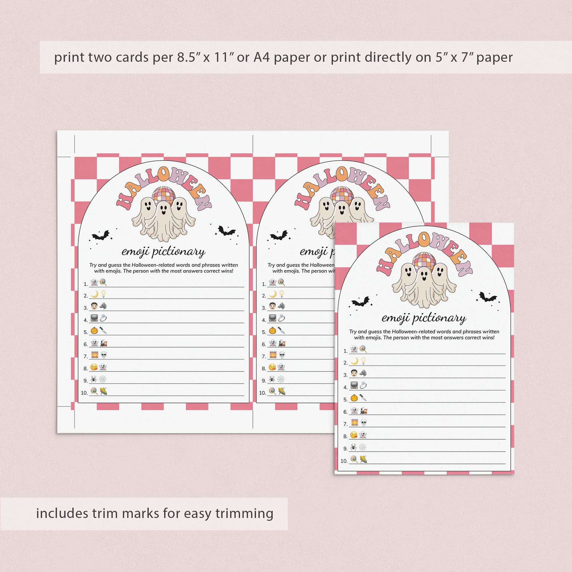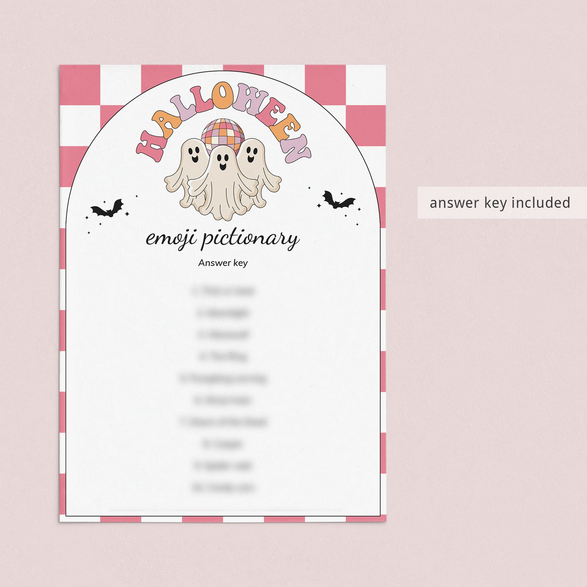 Are you looking for a unique game to play at your Ghost Halloween party? Play Emoji Pictionary with this 70s theme Halloween game with cute ghosts. This retro Halloween game will be the perfect addition to your Halloween party.